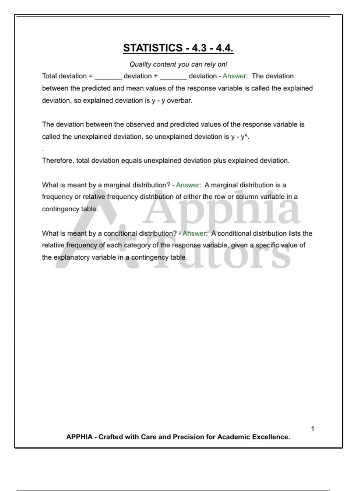 Total deviation = _______ deviation + _______ deviation - Answer: The deviation