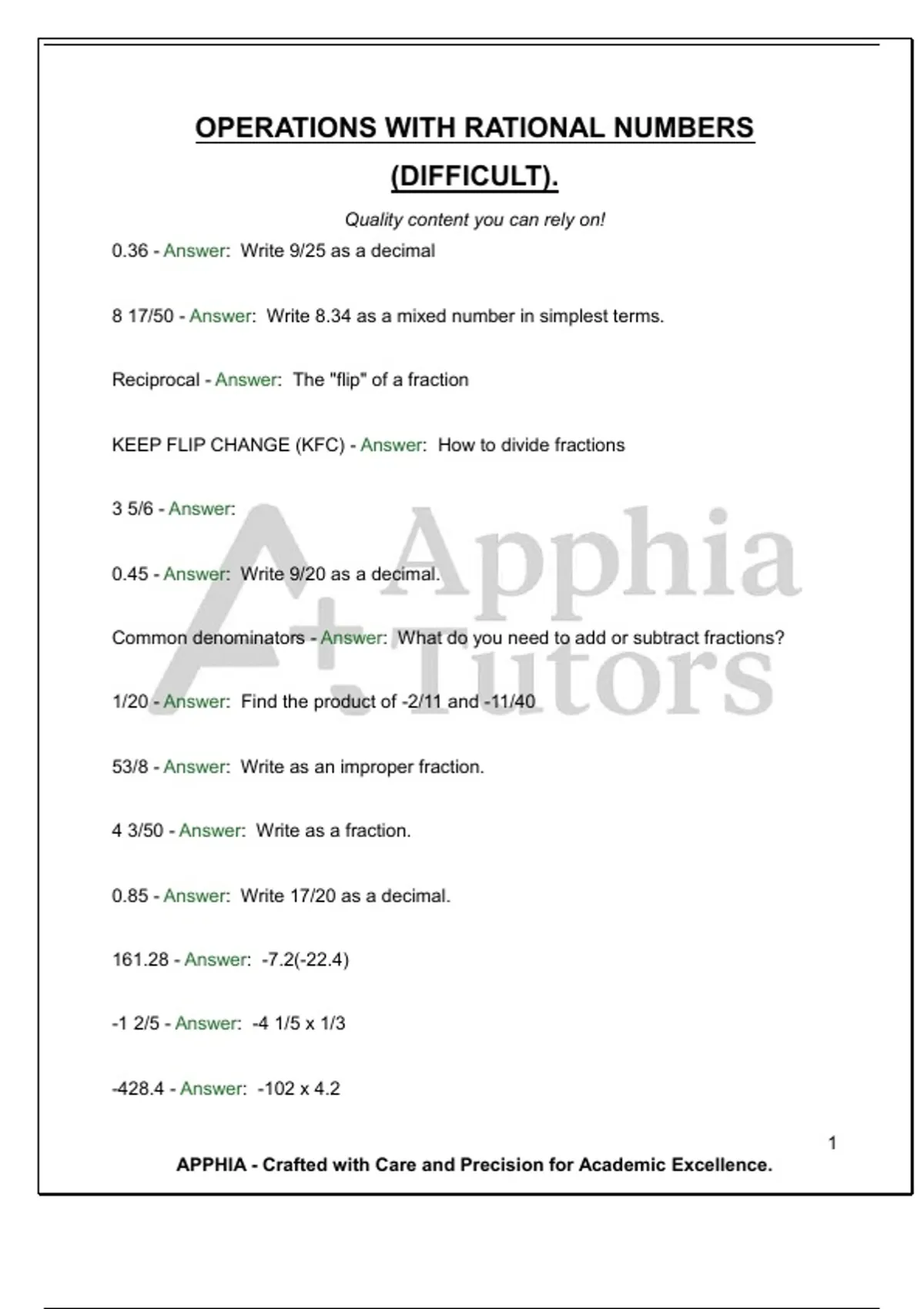 OPERATIONS WITH RATIONAL NUMBERS (DIFFICULT). Quality content you can rely on!