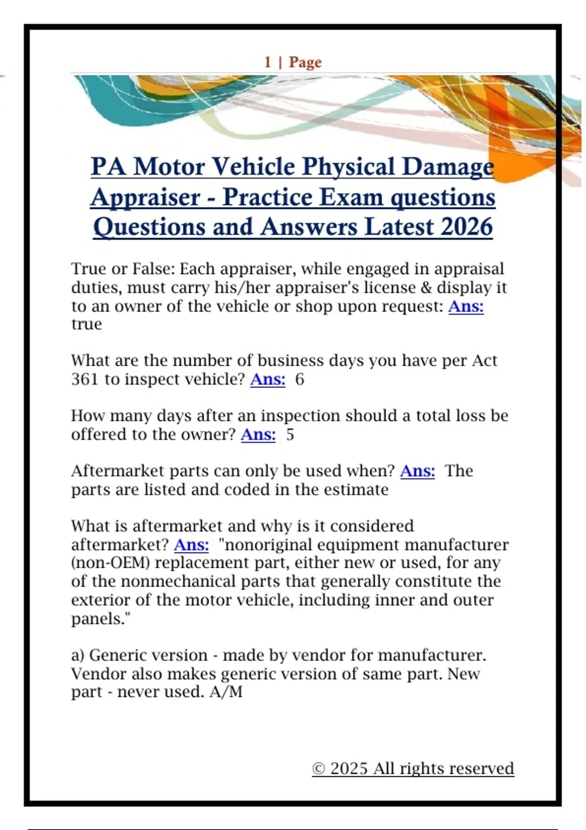 Appraiser - Practice Exam questions