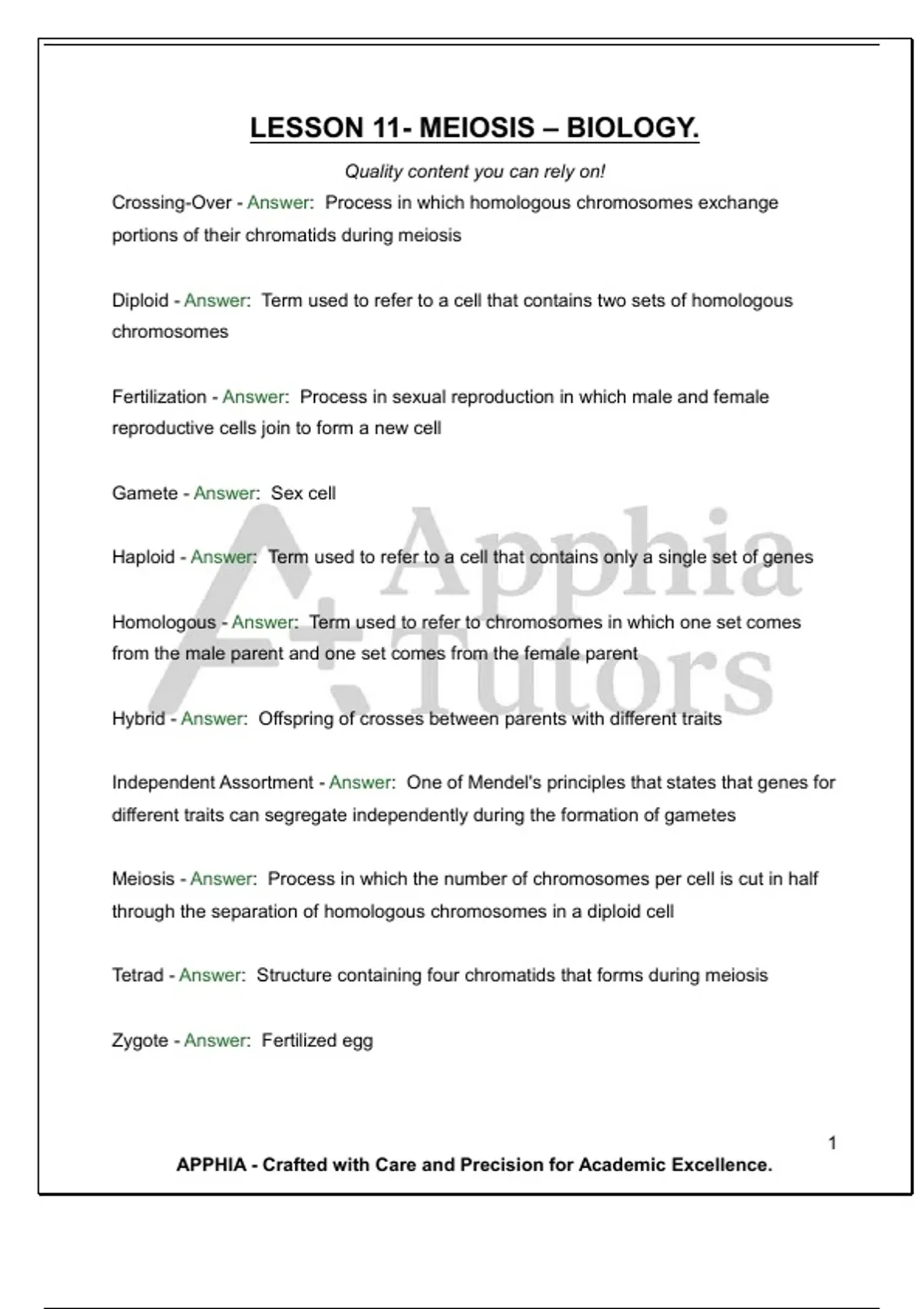 Crossing-Over - Answer: Process in which homologous chromosomes exchange