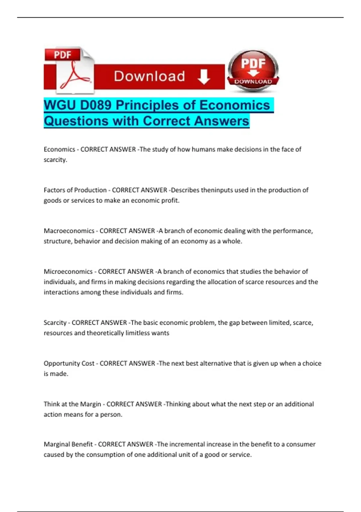 WGU D089 Principles of Economics Questions with Correct Answers