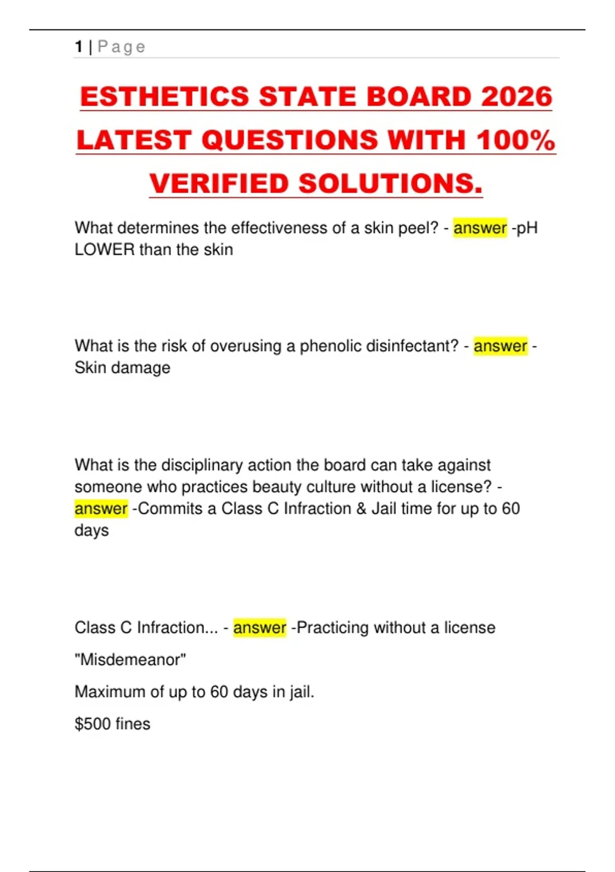 ESTHETICS STATE BOARD 2026 LATEST QUESTIONS WITH 100% VERIFIED SOLUTIONS.