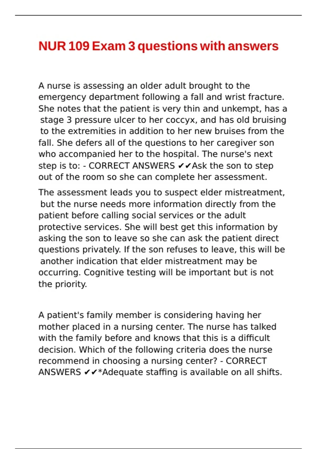 NUR 109 Exam 3 questions with answers