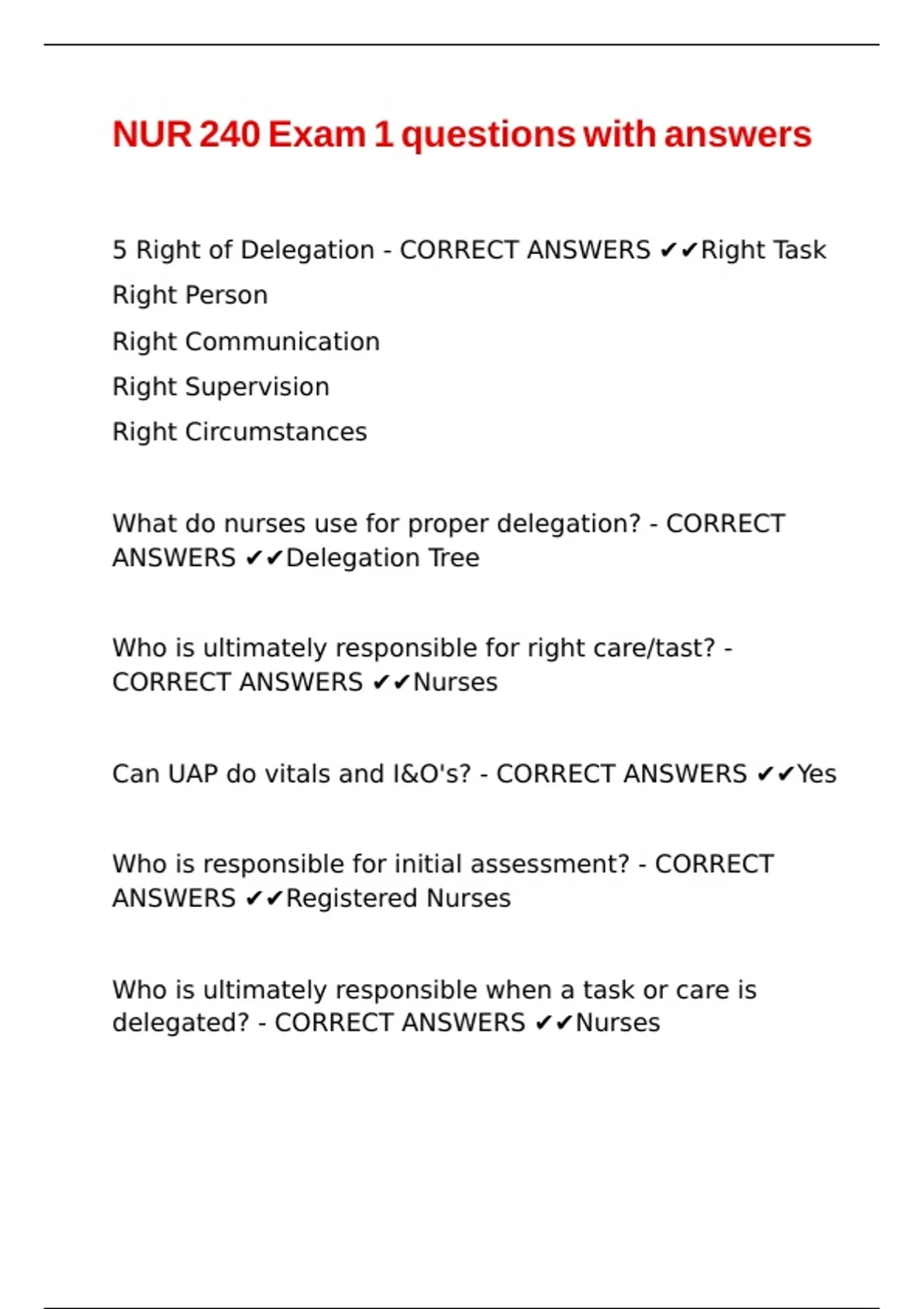 delegated? - CORRECT ANSWERS ✔✔Nurses |\ |\ |\ |\