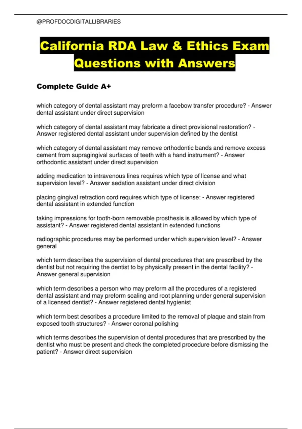 California RDA Law & Ethics Exam Questions with Answers