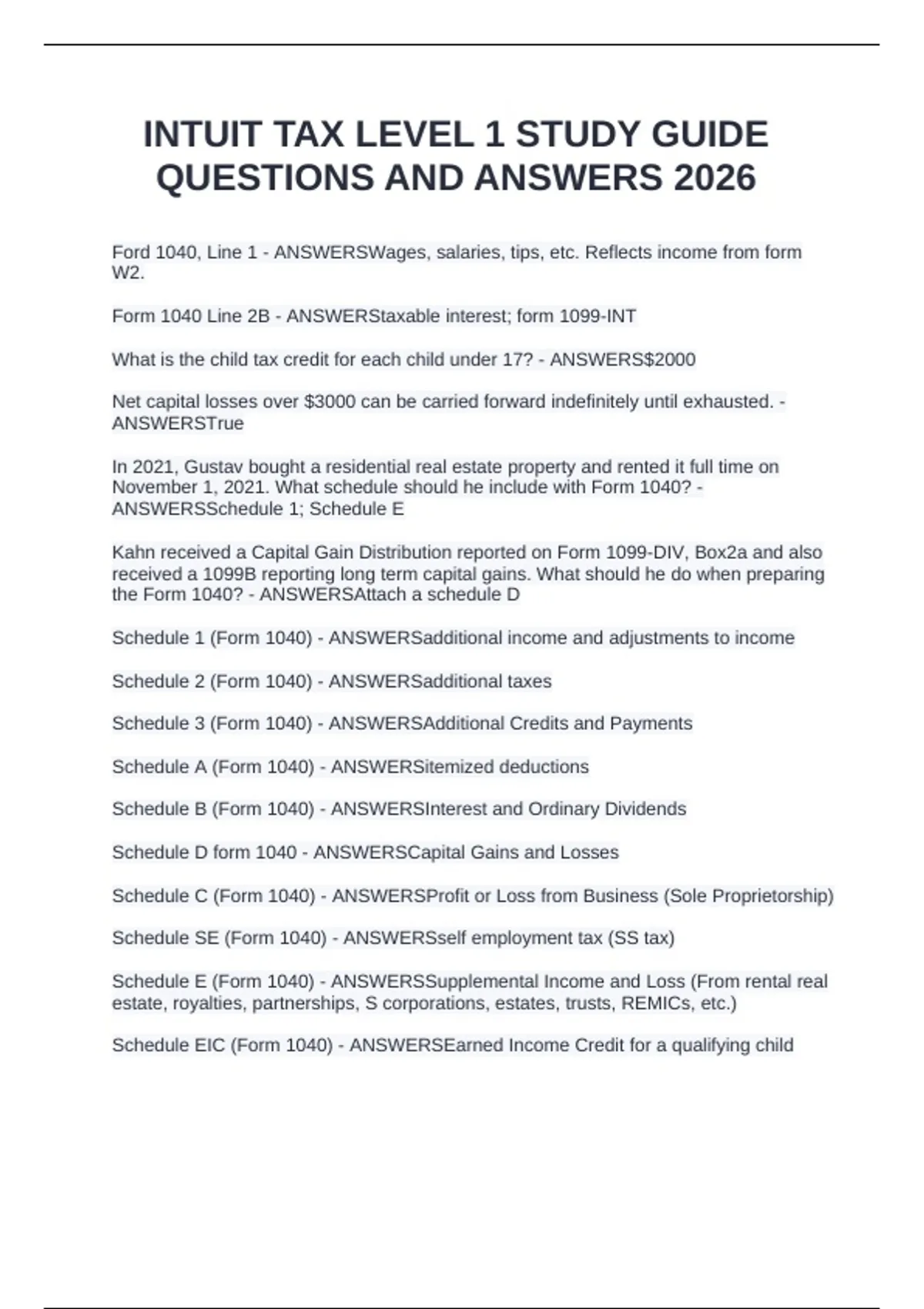 INTUIT TAX LEVEL 1 STUDY GUIDE QUESTIONS AND ANSWERS 2026