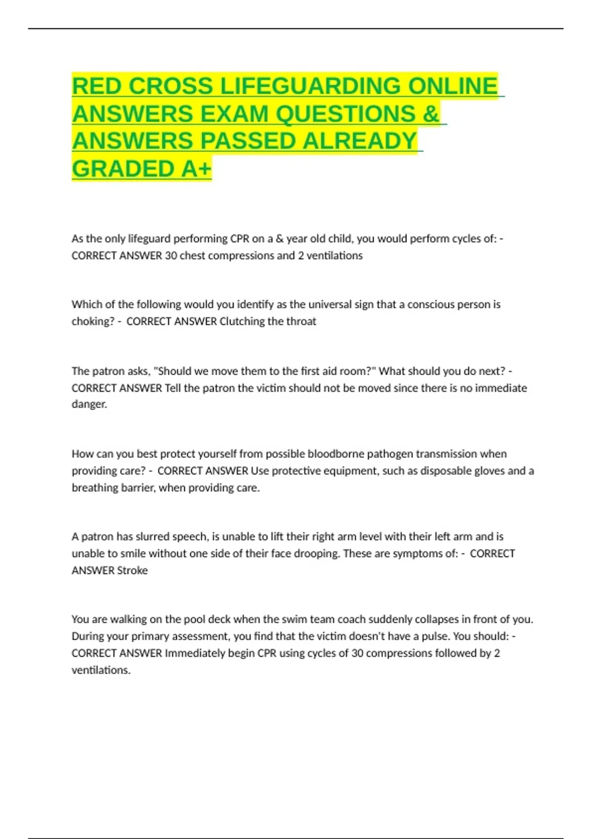 Which of the following should the other lifeguard do next? - CORRECT ANSWER begin chest