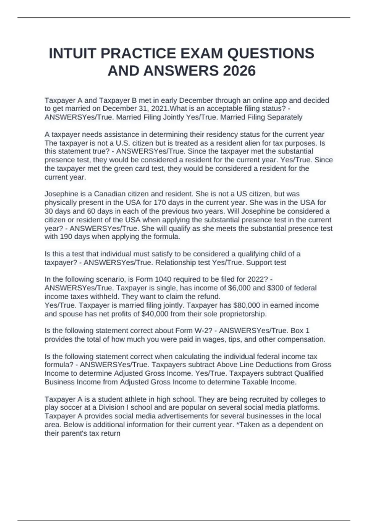 AND ANSWERS 2026