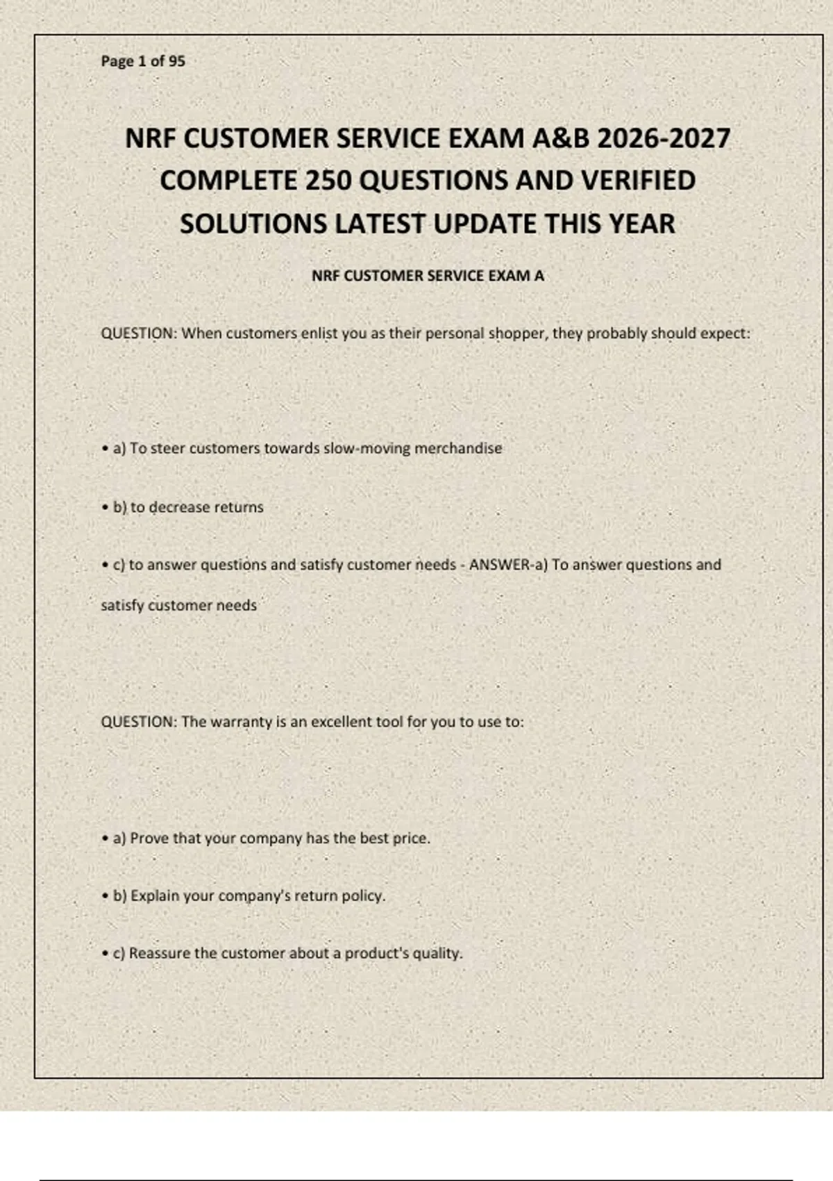 NRF CUSTOMER SERVICE EXAM A&B 2026-2027