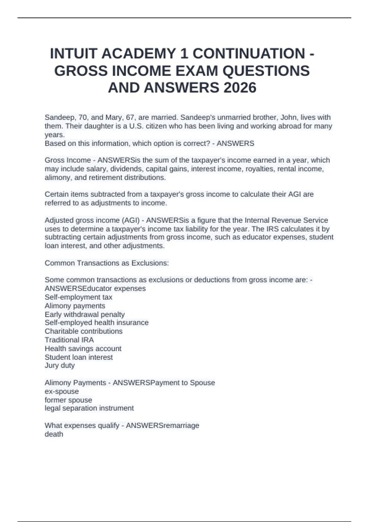 INTUIT ACADEMY 1 CONTINUATION - GROSS INCOME EXAM QUESTIONS AND ANSWERS 2026
