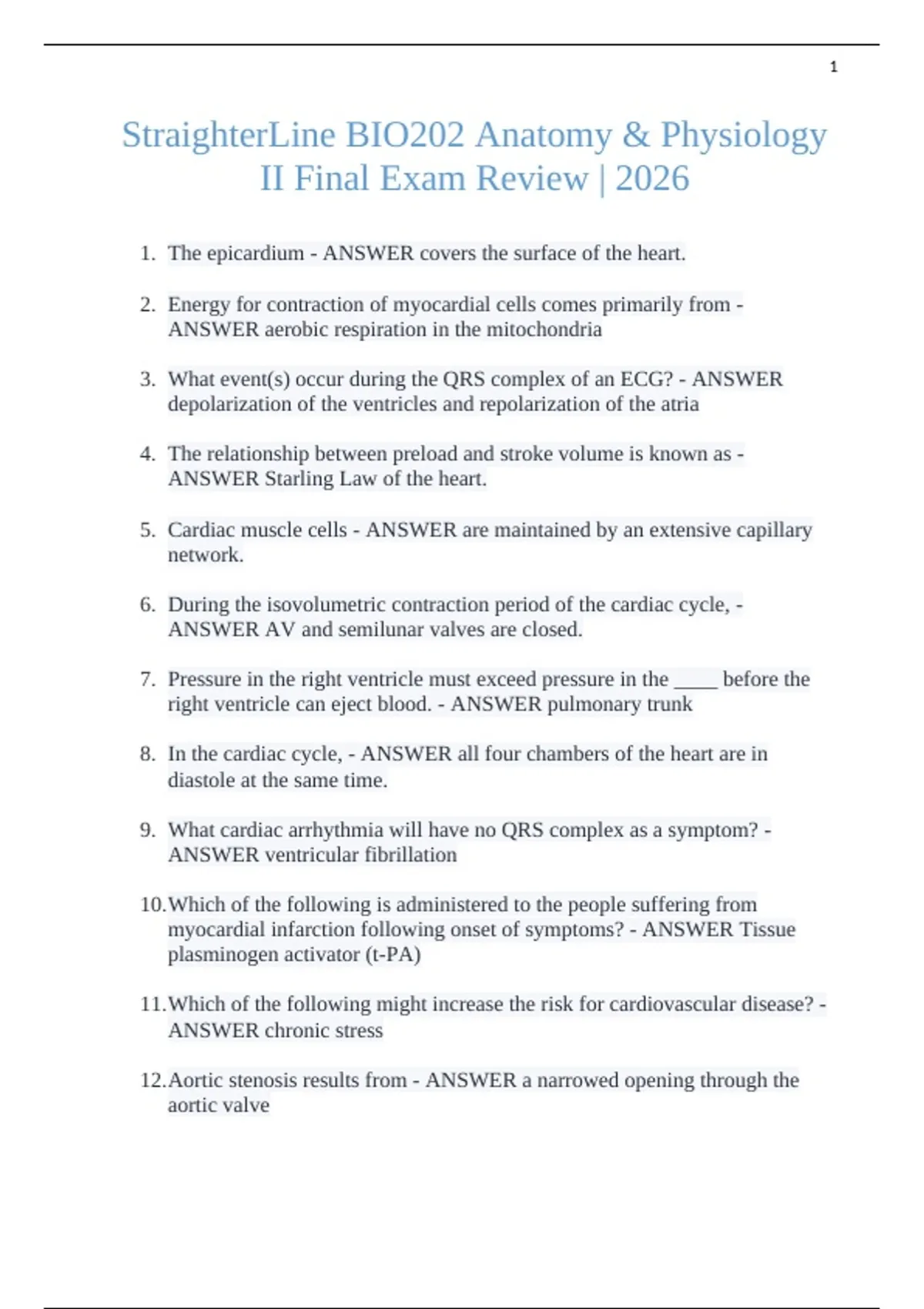 1. The epicardium - ANSWER covers the surface of the heart.