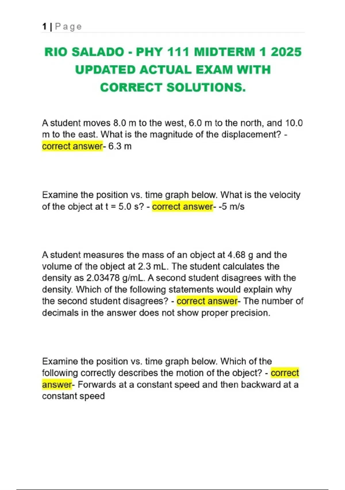 RIO SALADO - PHY 111 MIDTERM 1 2025 | 2026 UPDATED ACTUAL EXAM WITH CORRECT SOLUTIONS.