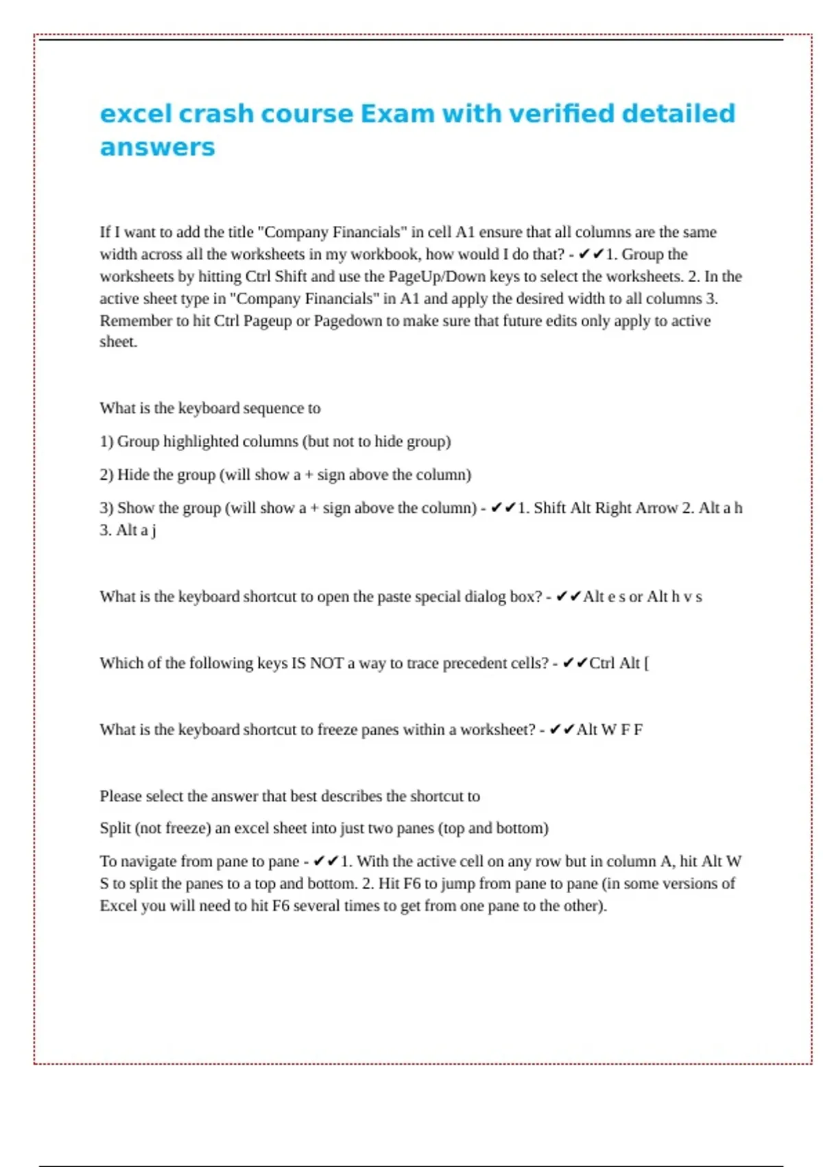 excel crash course Exam with verified detailed || || || || || || ||