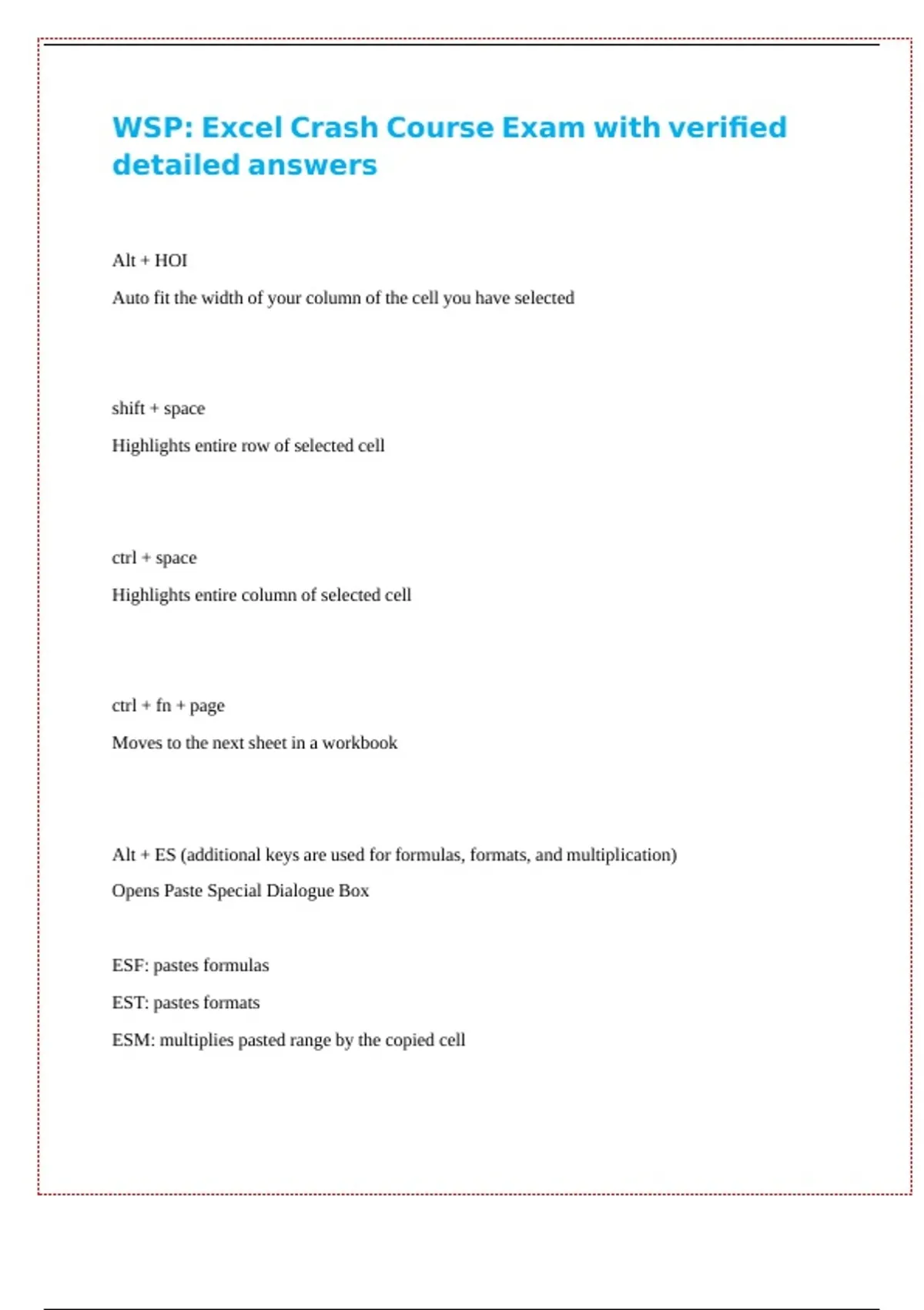 WSP: Excel Crash Course Exam with verified || || || || || || ||