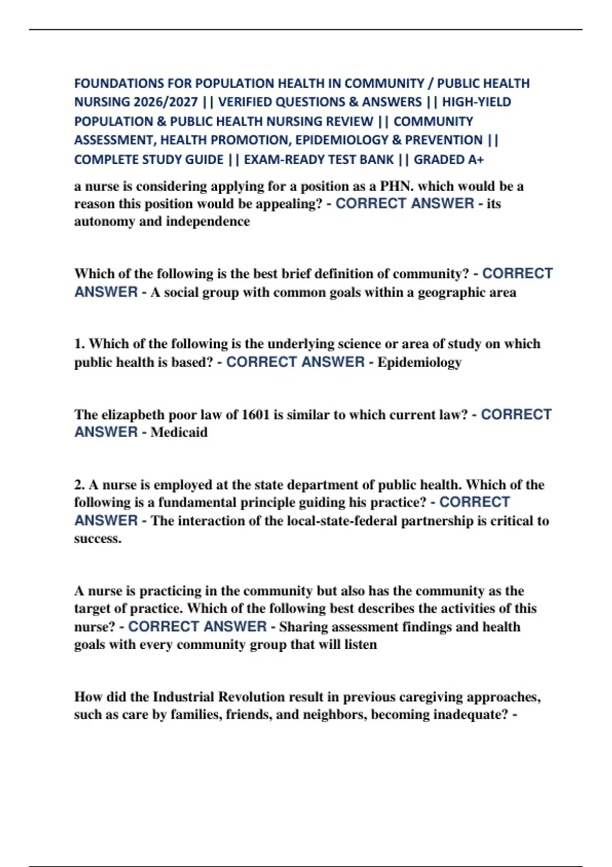 COMPLETE STUDY GUIDE || EXAM-READY TEST BANK || GRADED A+