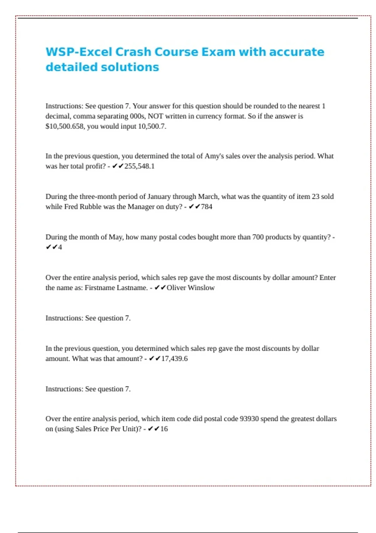 WSP-Excel Crash Course Exam with accurate || || || || || ||