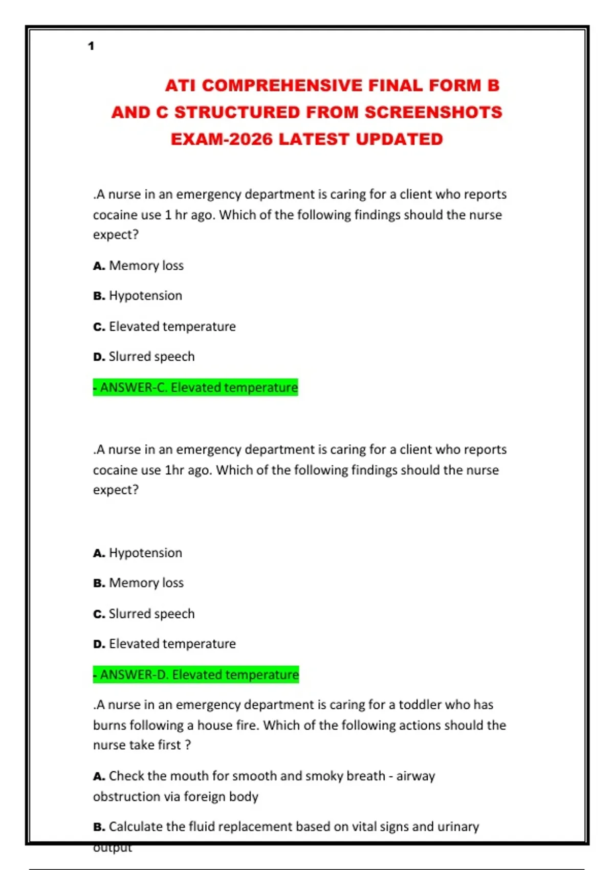 ATI COMPREHENSIVE FINAL FORM B