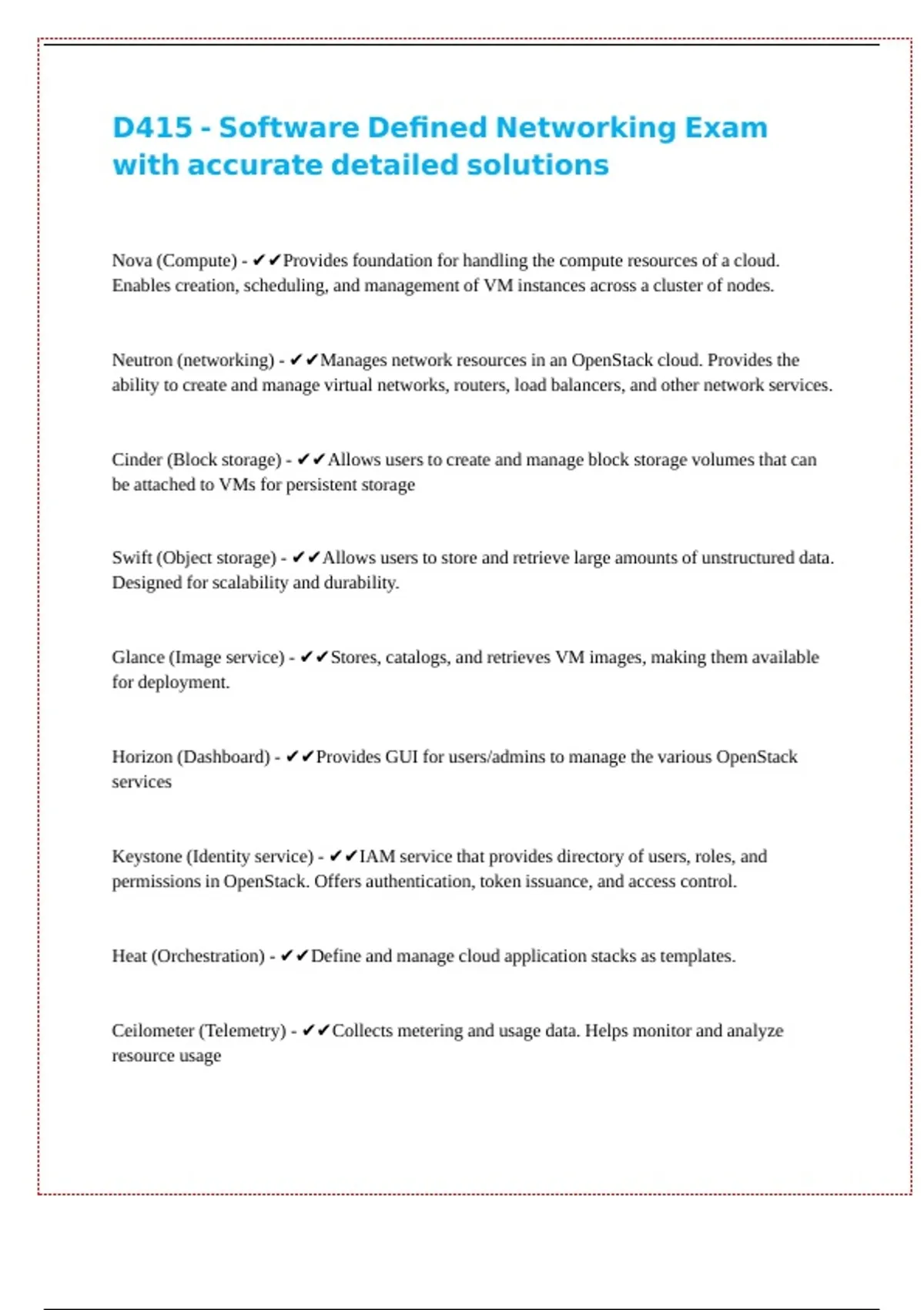 D415 - Software Defined Networking Exam || || || || || ||