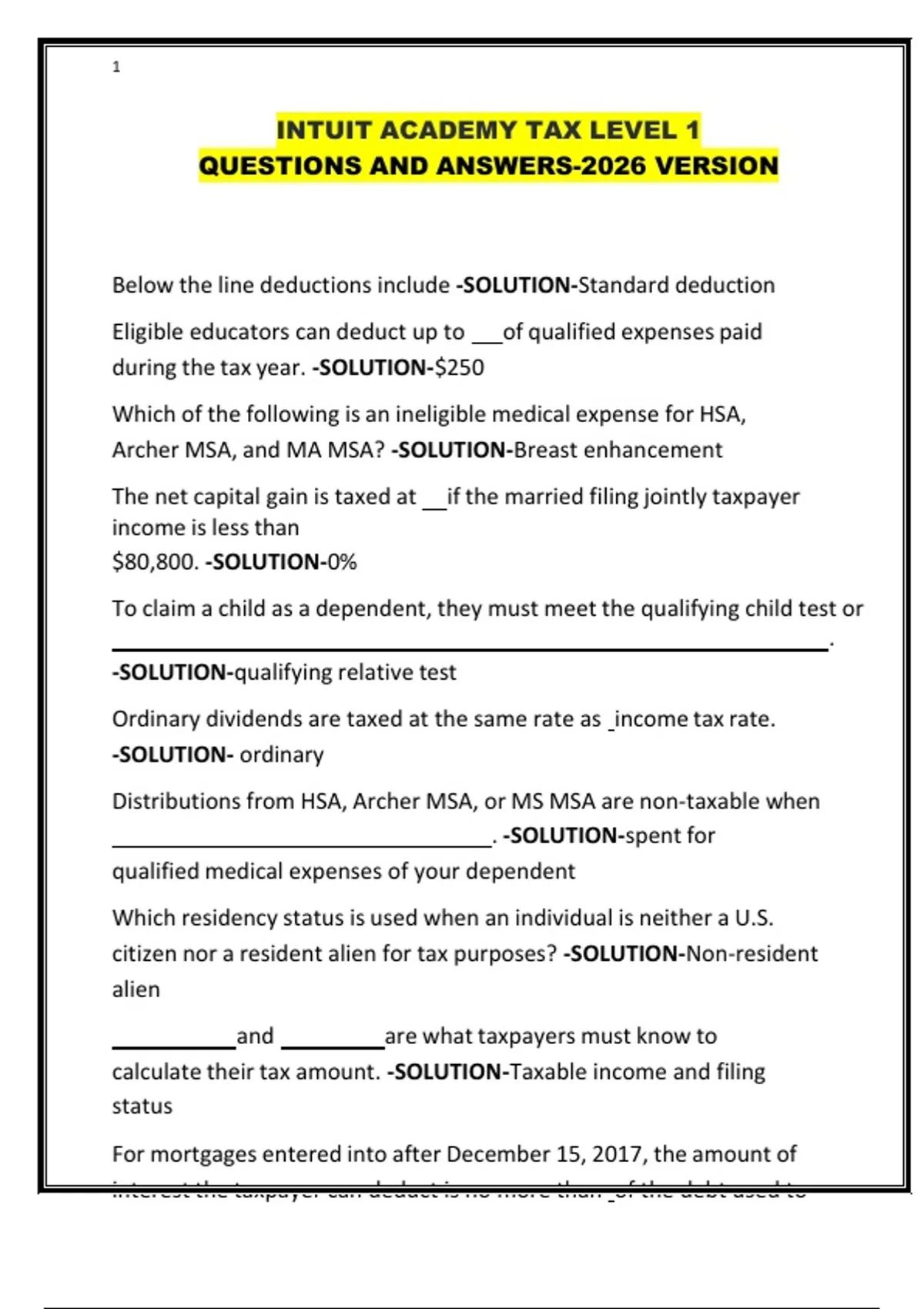 INTUIT ACADEMY TAX LEVEL 1