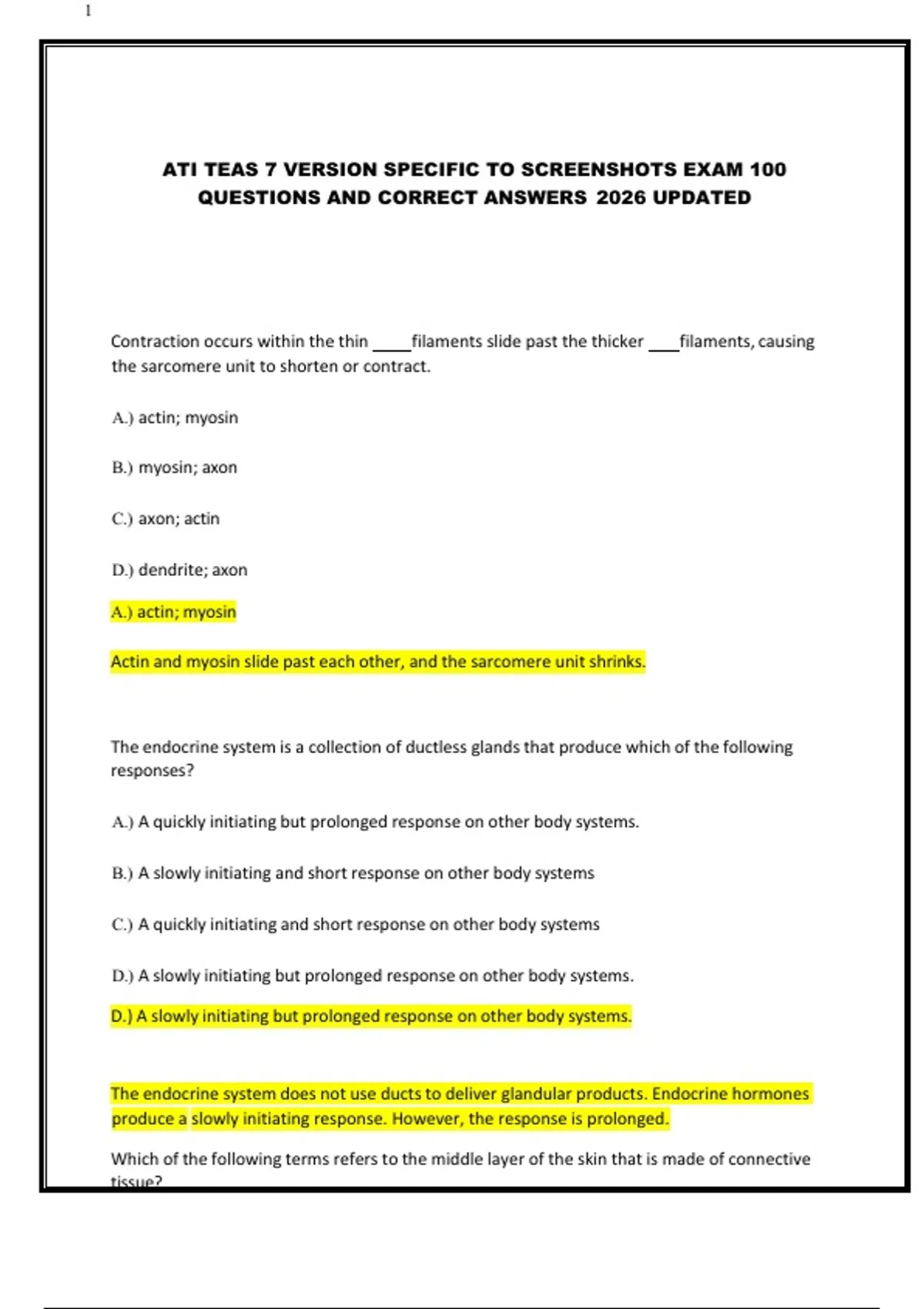 ATI TEAS 7 VERSION SPECIFIC TO SCREENSHOTS EXAM 100