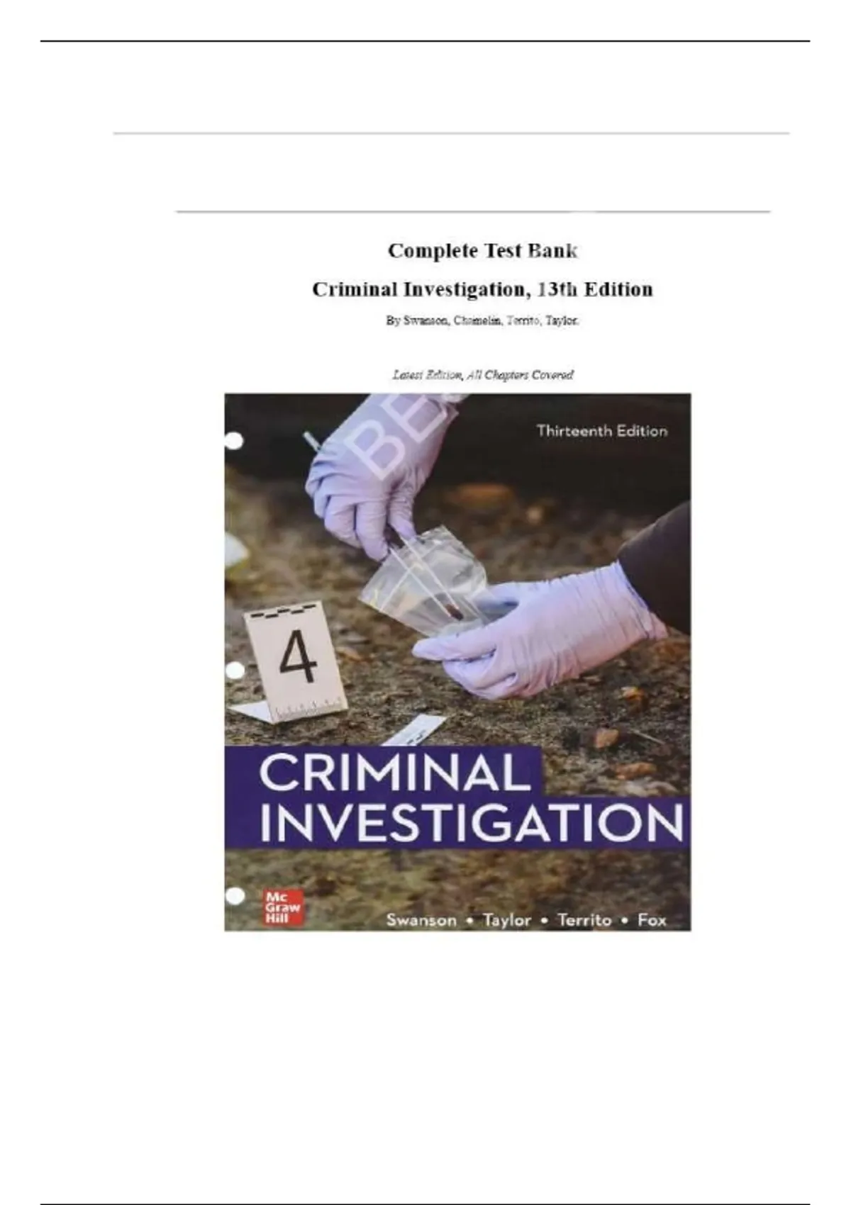 Complete Test Bank Criminal Investigation, 13th Edition By Swanson, Chamelin, Territo, Taylor. Latest Edition, All Chapters Covered