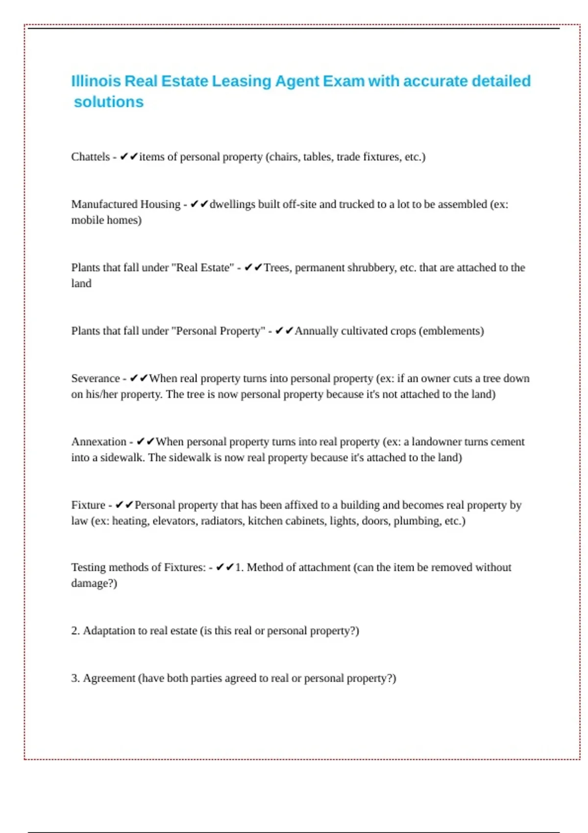 Illinois Real Estate Leasing Agent Exam with accurate detailed || || || || || || || ||