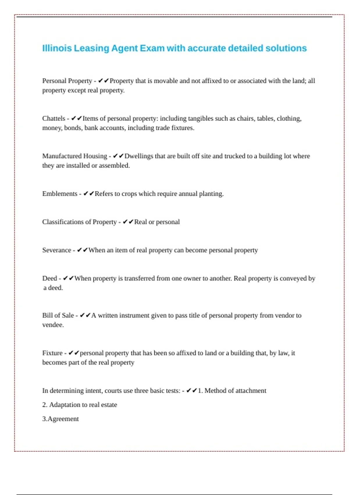 Illinois Leasing Agent Exam with accurate detailed solutions || || || || || || ||