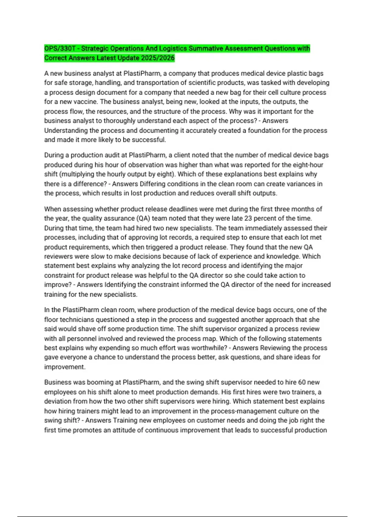 Correct Answers Latest Update 2025/2026
