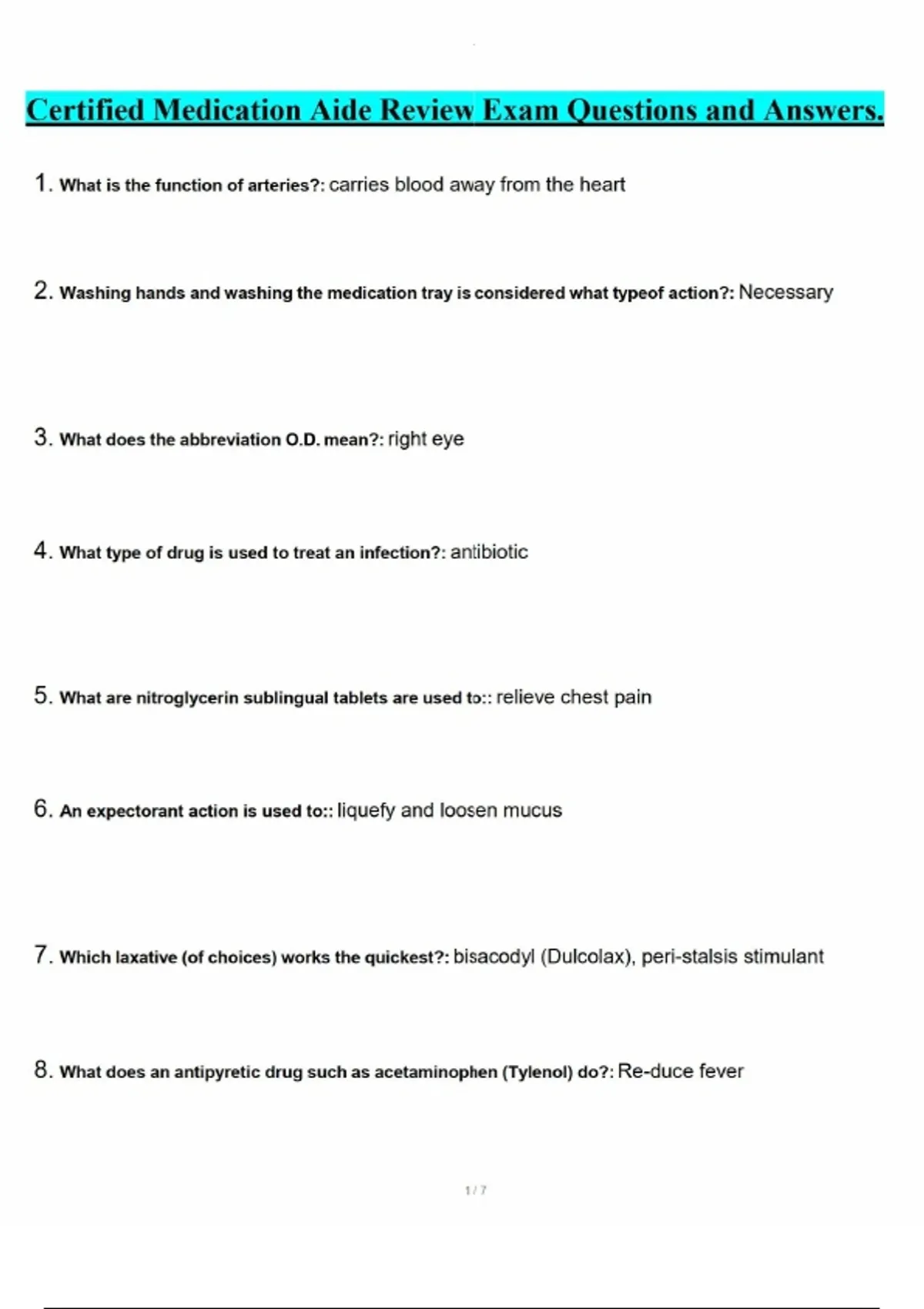 Certified Medication Aide Review Exam Questions and Answers.