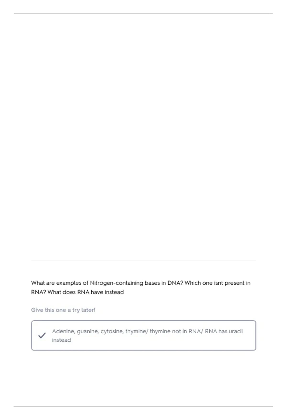 What are examples of Nitrogen-containing bases in DNA? Which one isnt present in