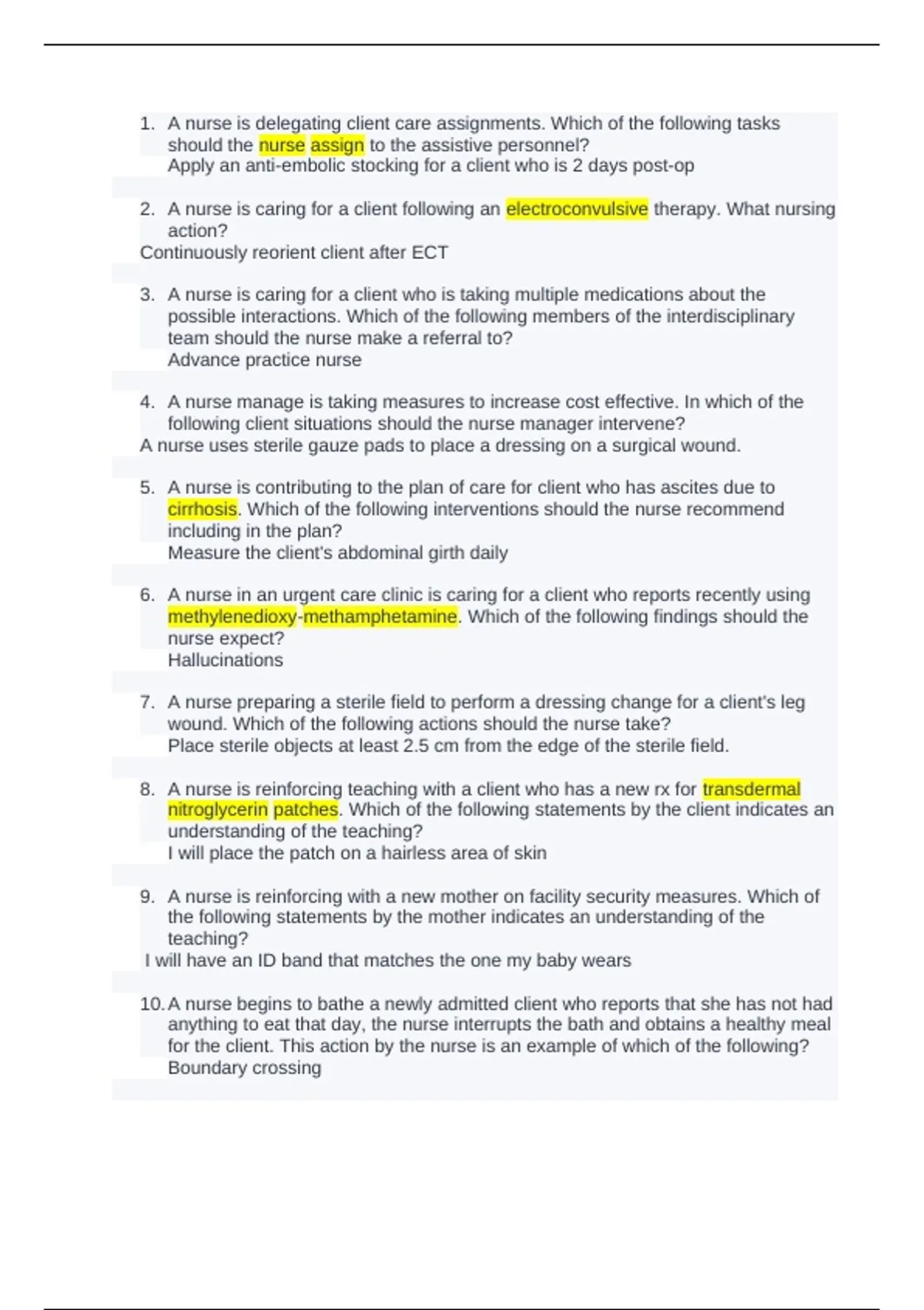 25. A nurse is preparing to delegate care to assistive personnel. Which of the