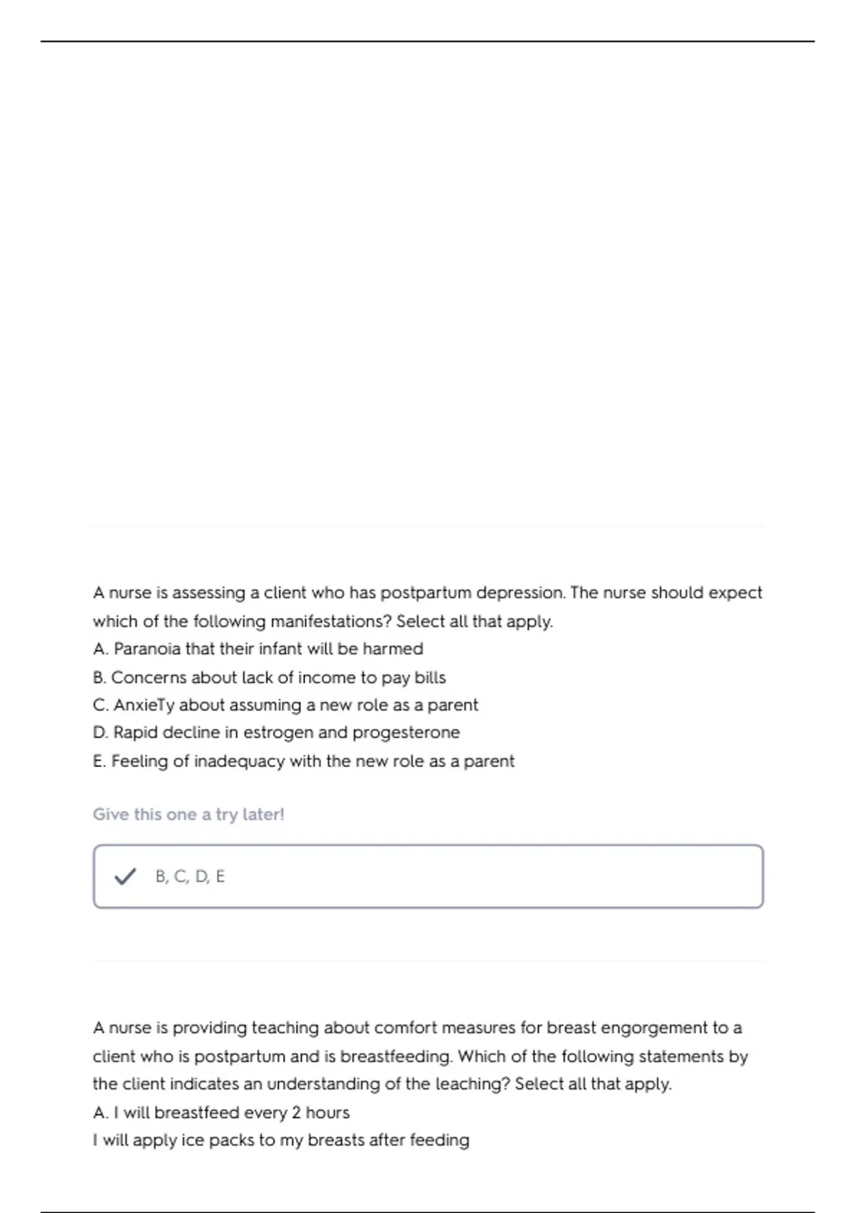 client who is postpartum and is breastfeeding. Which of the following statements by