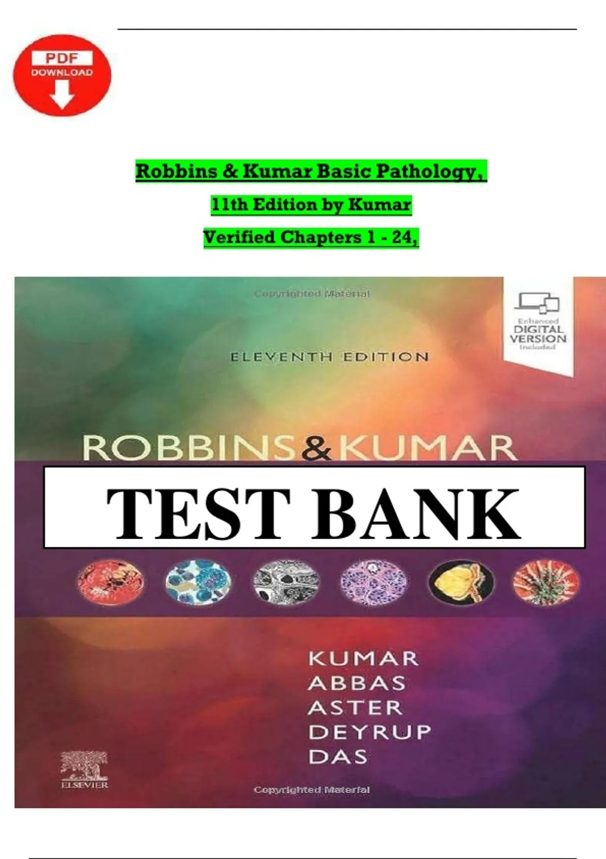Robbins & Kumar Basic Pathology, TEST BANK Verified Chapters 1 - 24, 11th Edition by Kumar