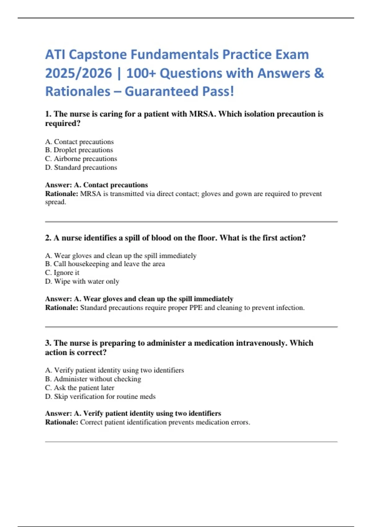 ATI Capstone Fundamentals Practice Exam