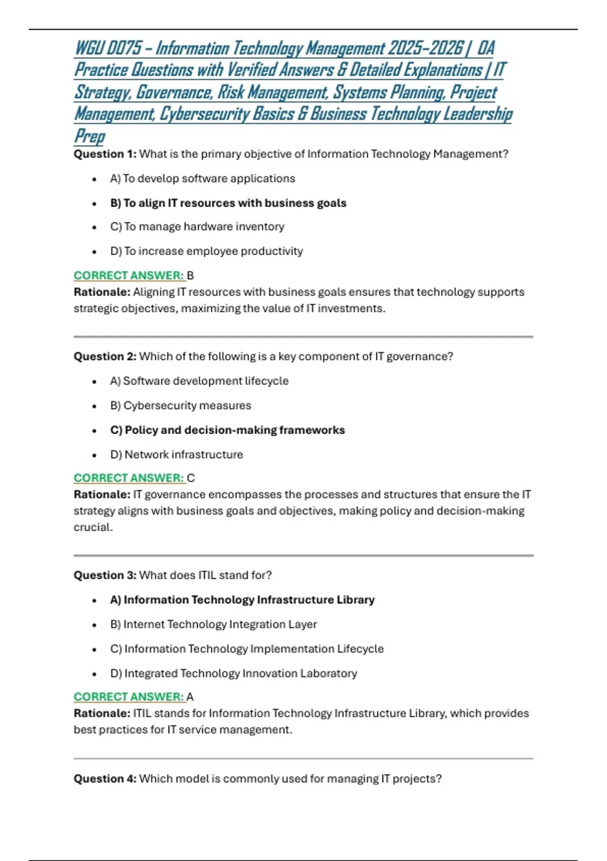 Practice Questions with Verified Answers & Detailed Explanations | IT