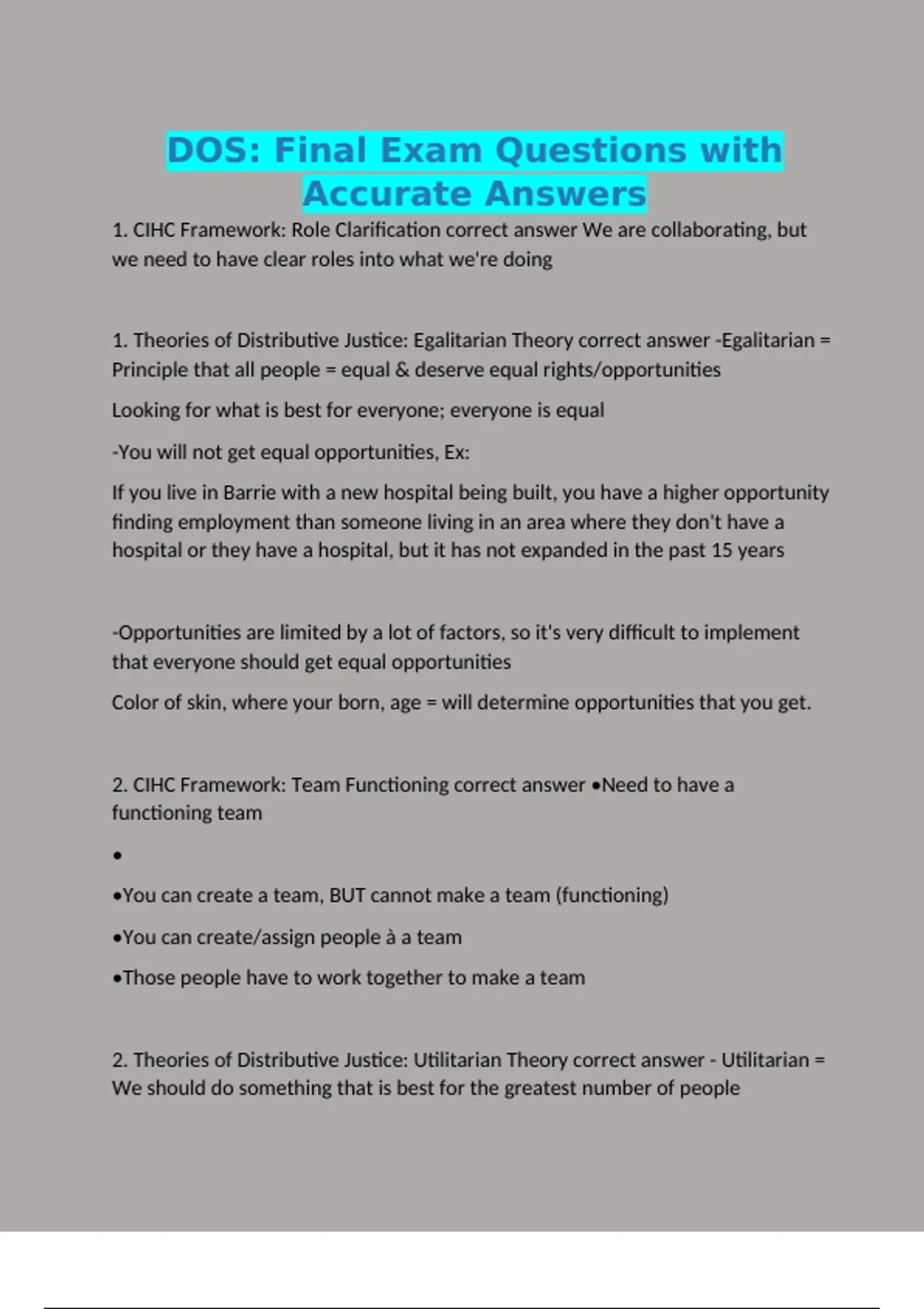1. Theories of Distributive Justice: Egalitarian Theory correct answer -Egalitarian =