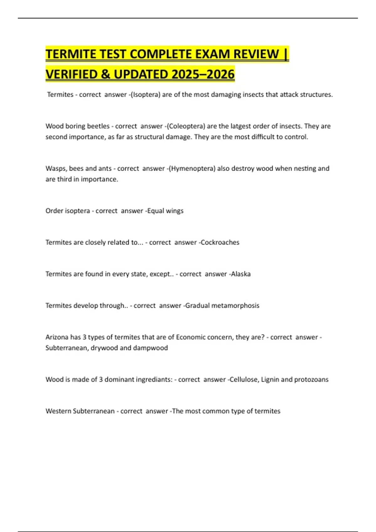 TERMITE TEST COMPLETE EXAM REVIEW |