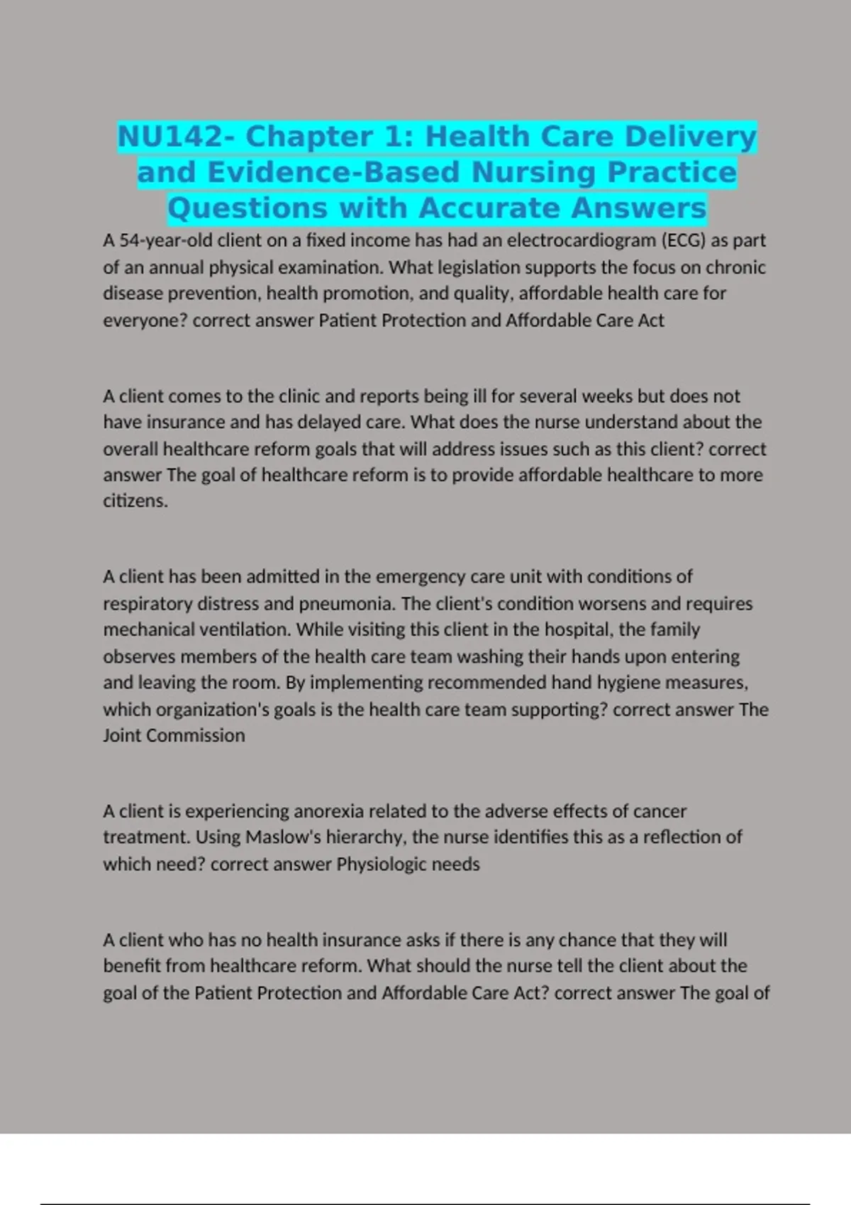 overall healthcare reform goals that will address issues such as this client? correct