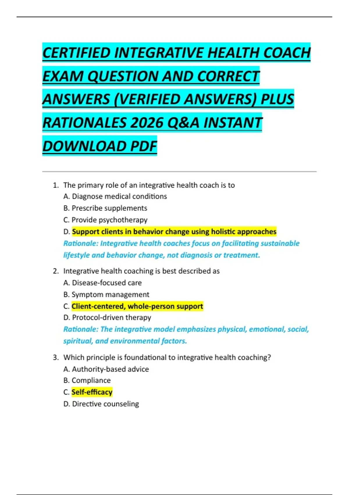 Rationale: Integrative health coaches focus on facilitating sustainable