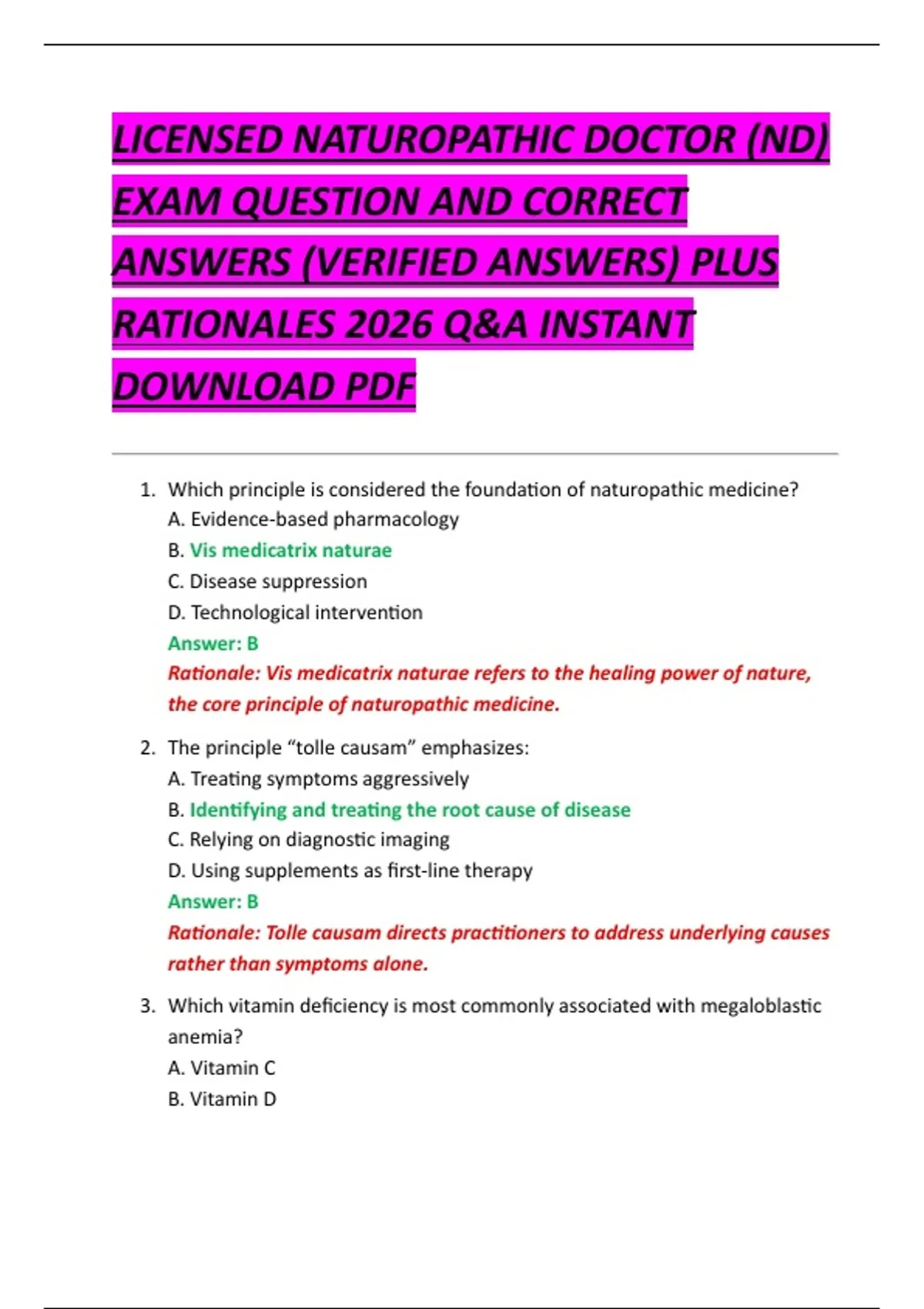 LICENSED HERBALIST CERTIFICATION EXAM QUESTION AND CORRECT ANSWERS (VERIFIED ANSWERS) PLUS RATIONALES 2026 Q&A INSTANT DOWNLOAD PDF