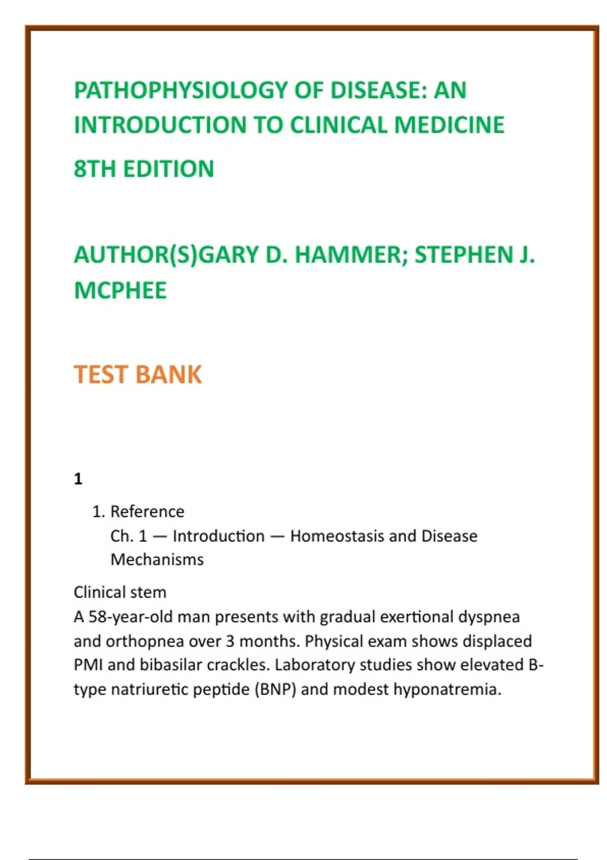 Pathophysiology of Disease Test Bank (8th Ed) | Hammer & McPhee | Case-Based Clinical