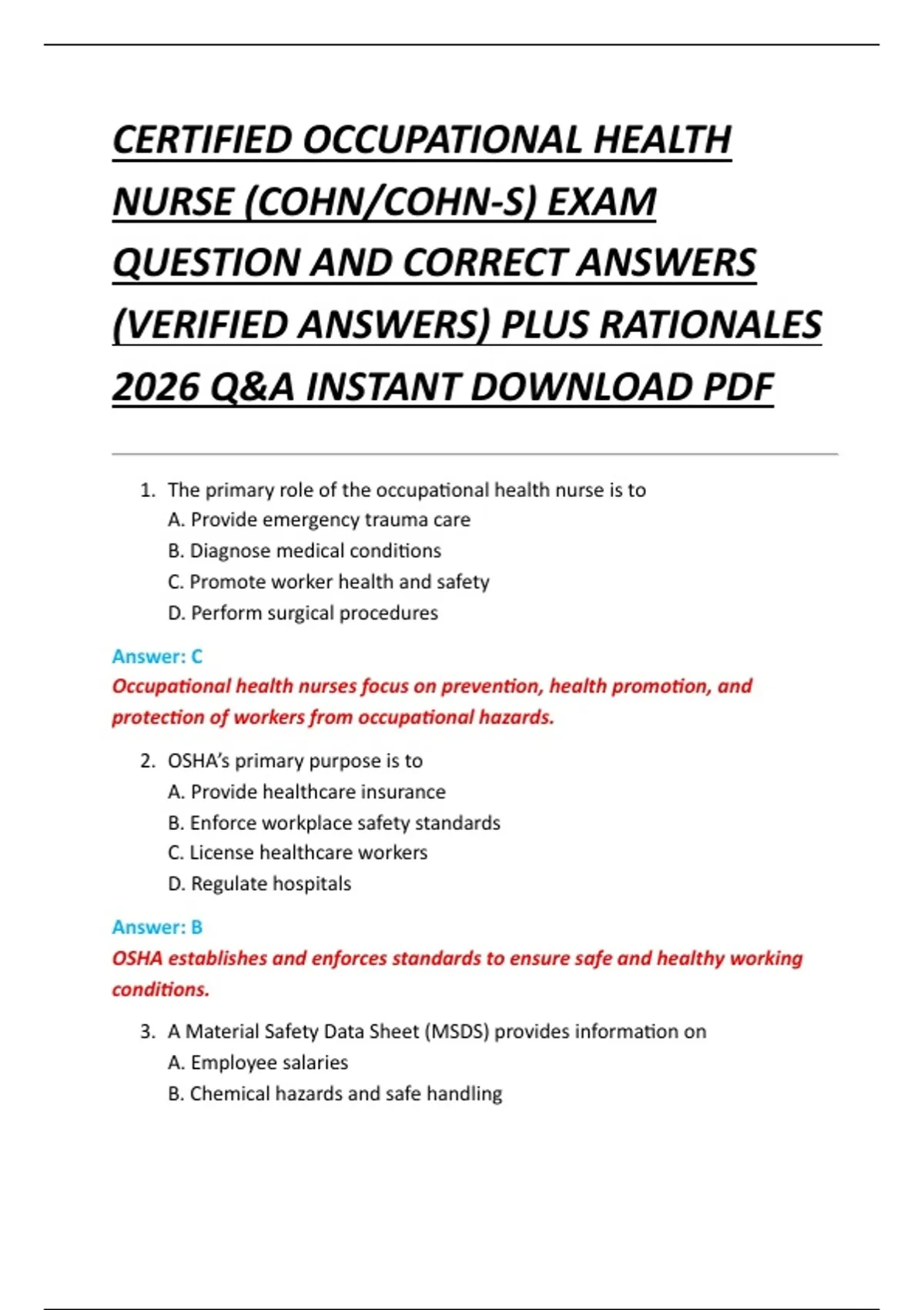 (VERIFIED ANSWERS) PLUS RATIONALES