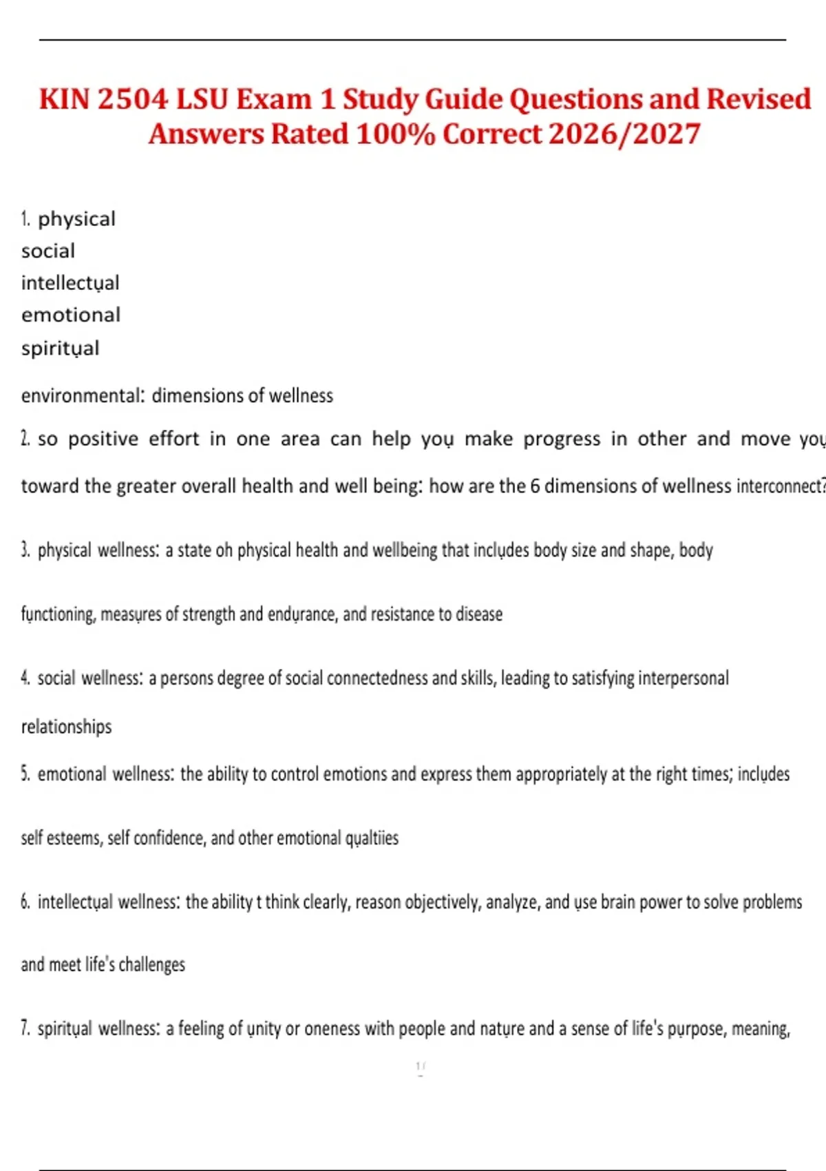 KIN 2504 LSU 2026/2027 – Exam 1 Study Guide Questions with Revised Answers