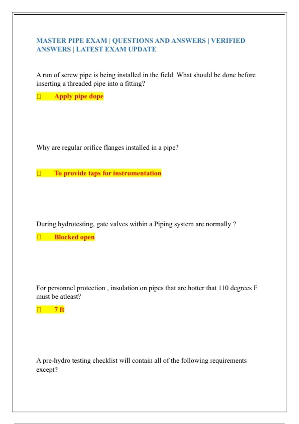MASTER PIPE EXAM | QUESTIONS AND ANSWERS | VERIFIED