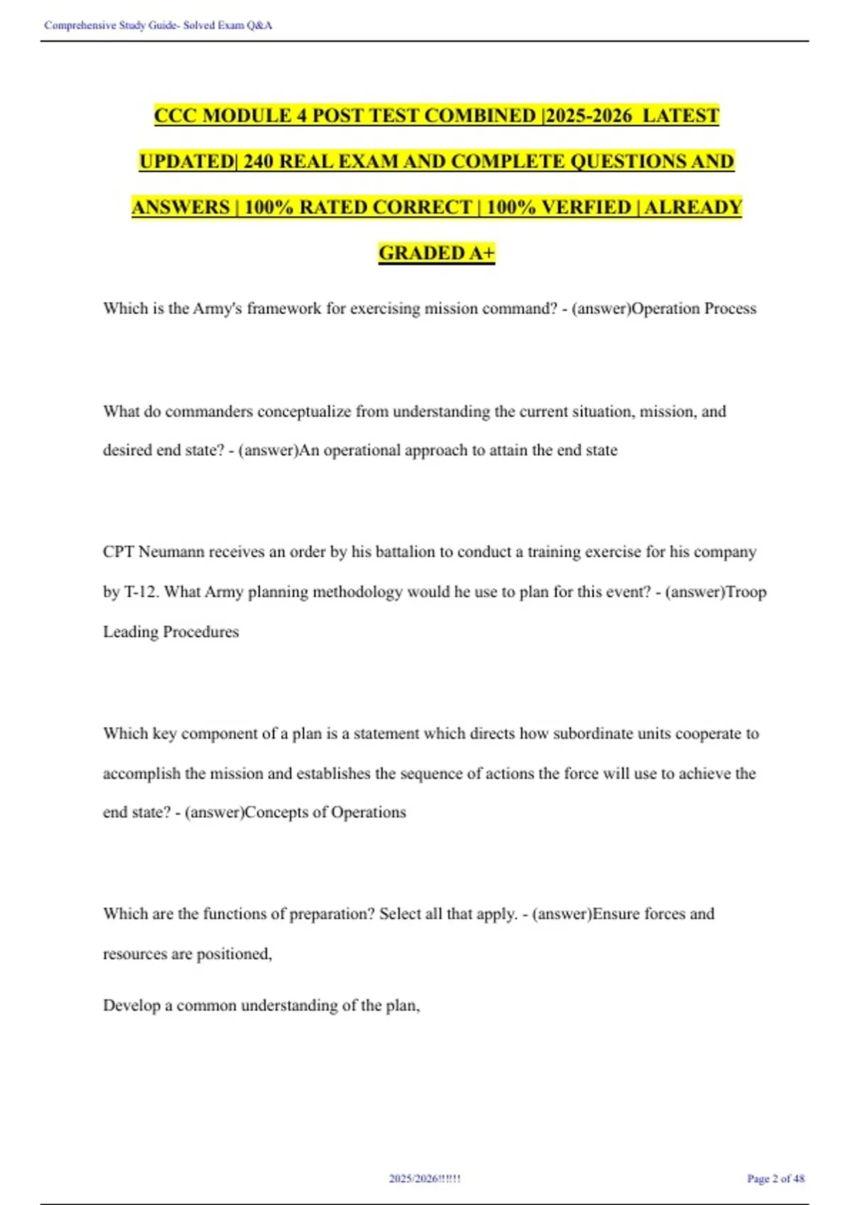 Comprehensive Study Guide- Solved Exam Q&A