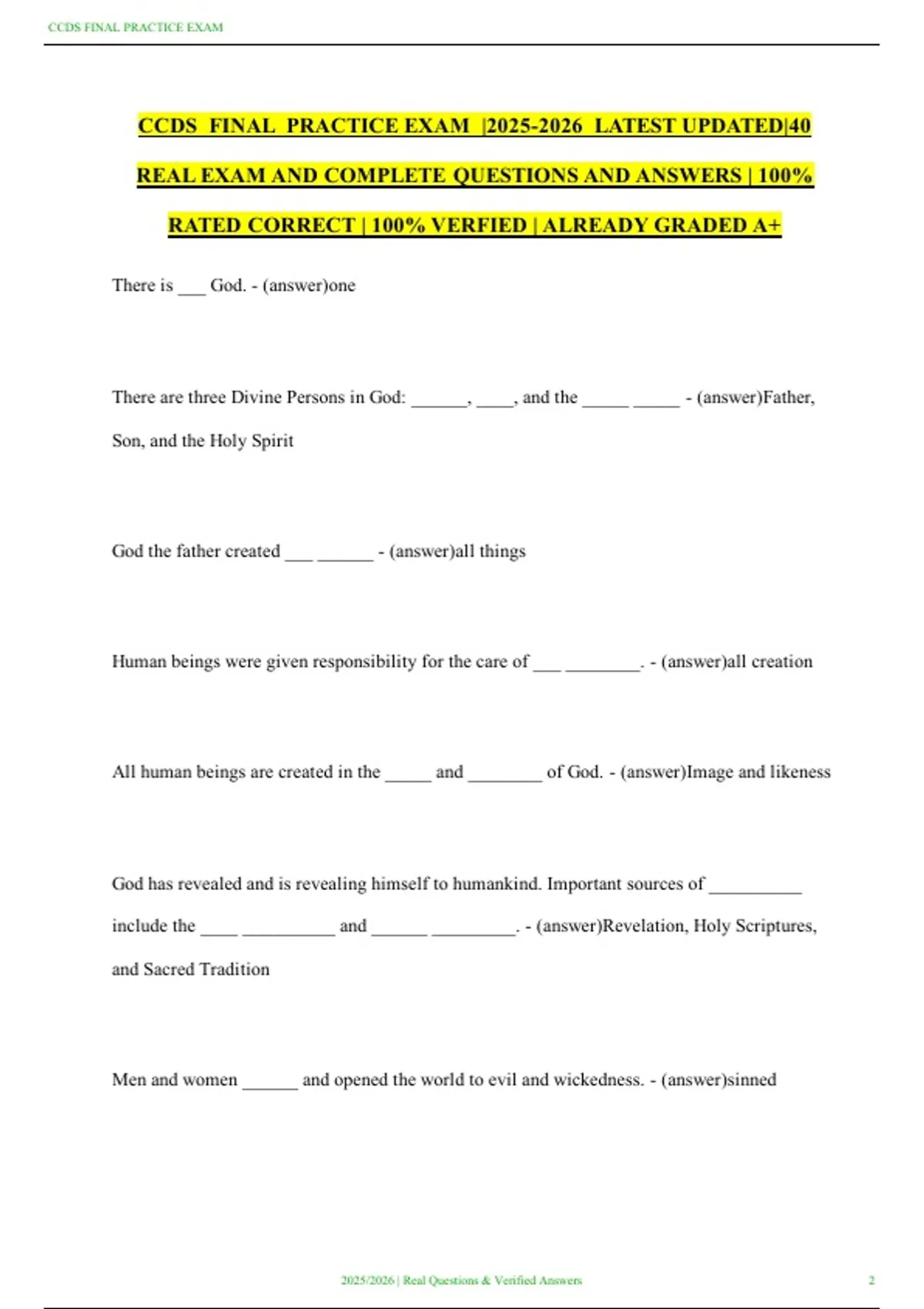 CCDS FINAL PRACTICE EXAM |2025-2026 LATEST UPDATED|40