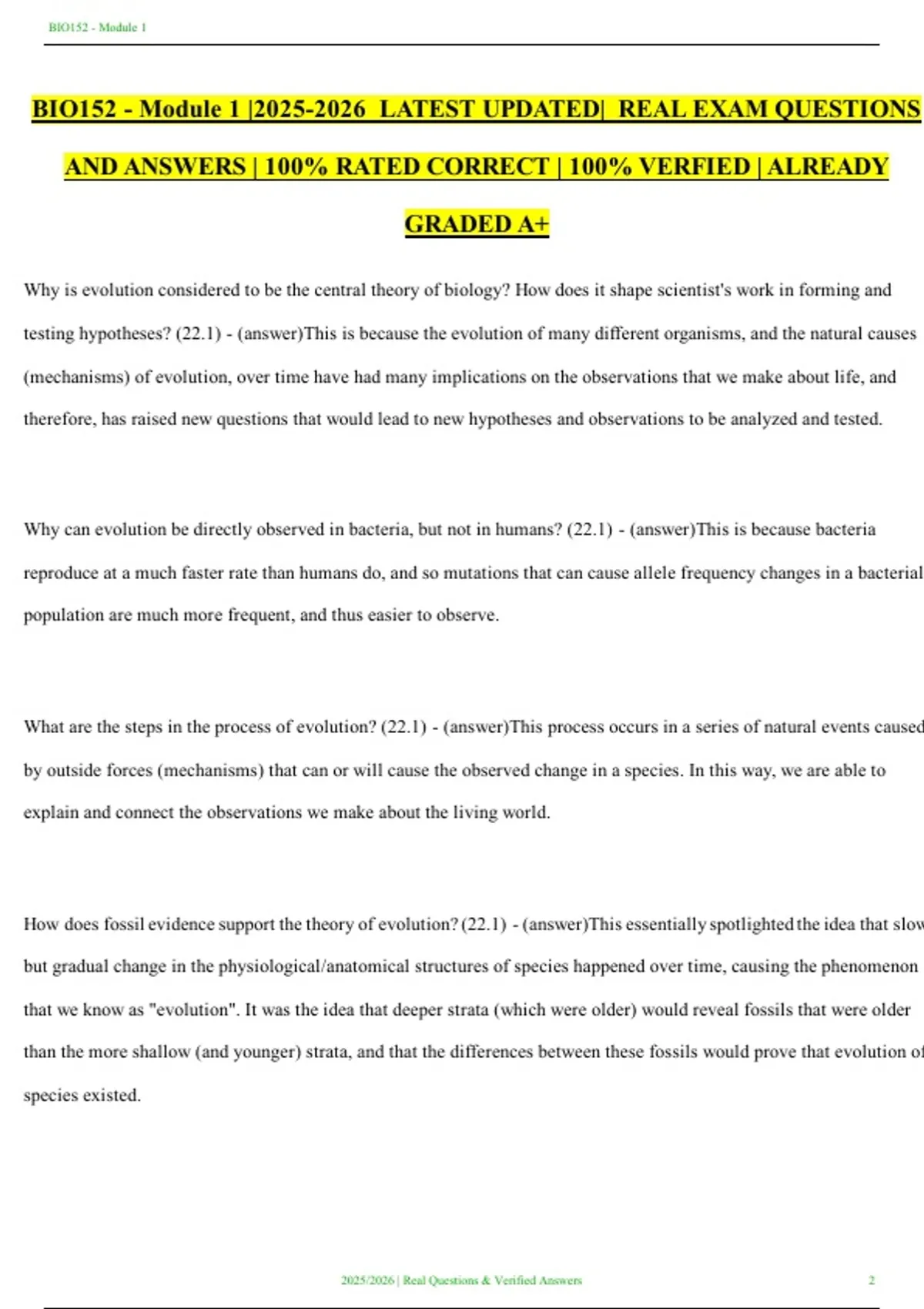 BIO152 - Module 1 |2025-2026 LATEST UPDATED| REAL EXAM QUESTIONS