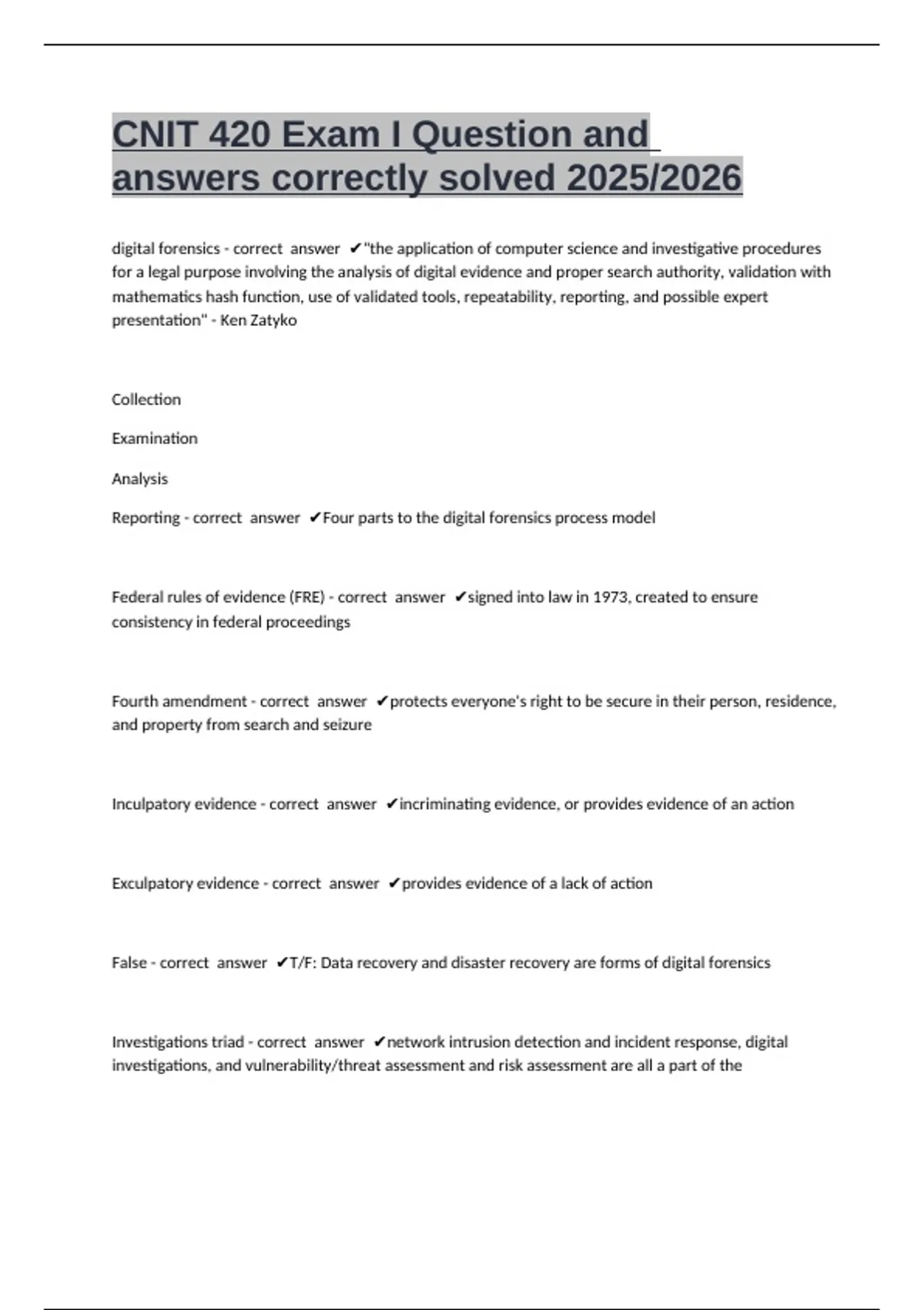Reporting - correct answer ✔Four parts to the digital forensics process model