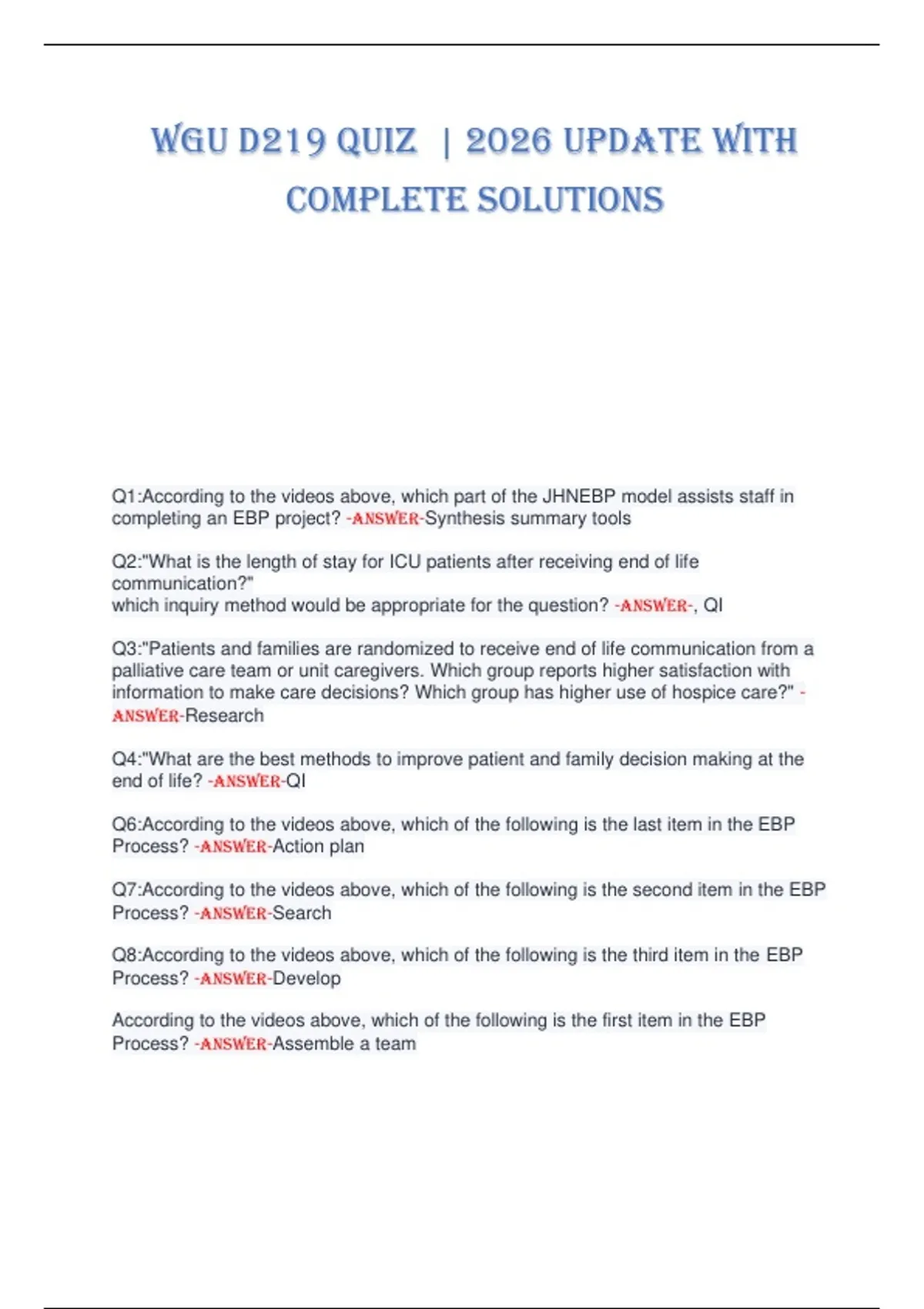 Q6:According to the videos above, which of the following is the last item in the EBP