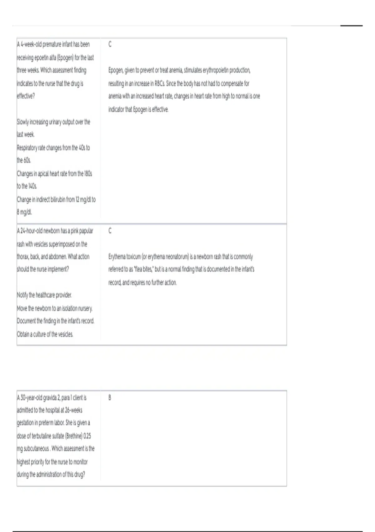 gestation in preterm labor. She is given a Monitoring maternal and fetal heart rates is most important when terbutaline is being